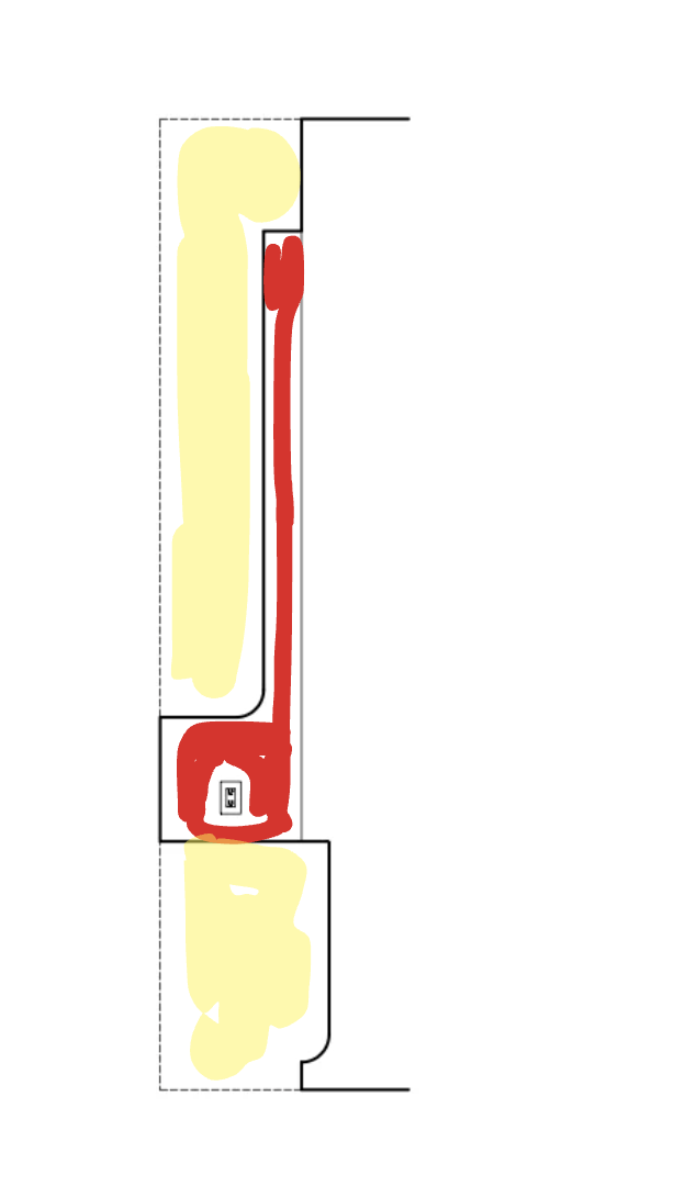 everything that is in yellow make the patina brass metal and then the section with red in it has the brown marble make it look realistic its the side view of a hutch eliminate the actual red and yellow ink and make the shape exact as the drawing note the curved nature of the bottom