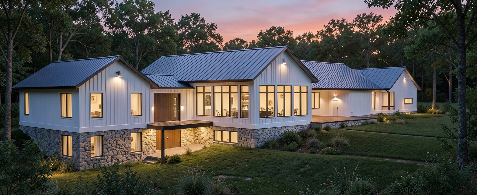 photo realistic render classical home high green hedges fence dramatic lighting award winning afternoon high contrast wet slate roofing wet road pedestrian gate with two vehiecular gates on the side