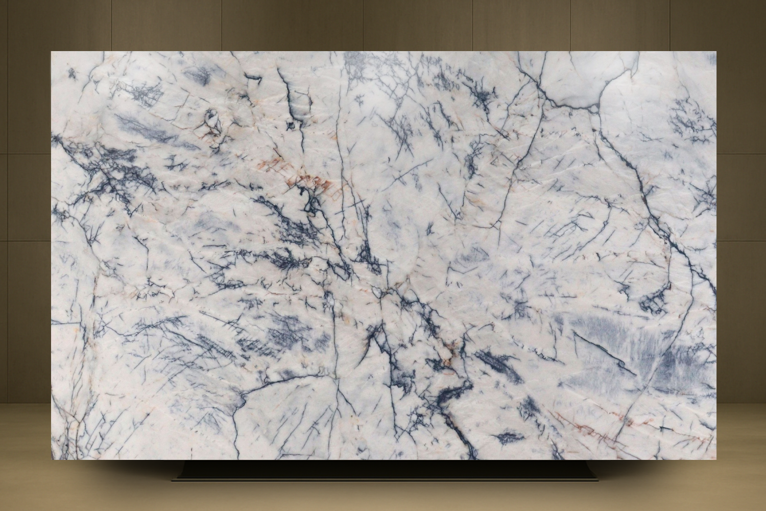 create a moodboard based on this slab of cristallo include tile wood finishes metals wallpaper and fabrics
