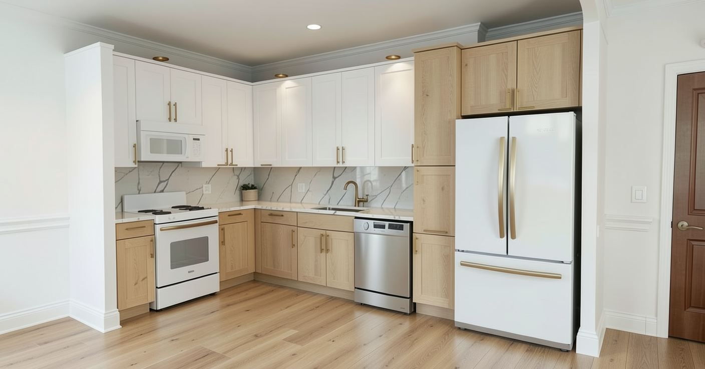 the upper cabinets should be a pale warm grey