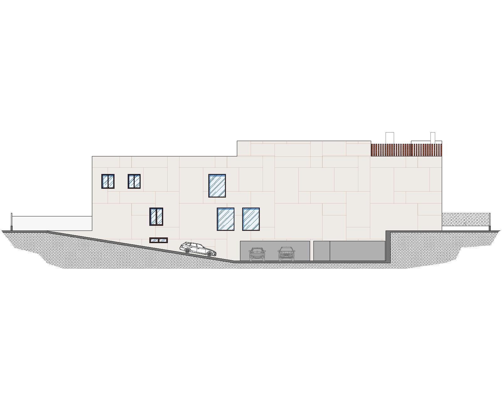 el revestimiento es un aplazado en gres blanco hueso las carpinter as son met licas en color acero corten existen arboles a ambos lados del edificio el sol iluminara todo el frente del edifico no a adas detalles que no existen en la fotografia manten sin modificar los elementos de la imagen todas las carpinterias son metalicas con vodrio no a adas ningun tipo de carpinteria en los dos huecos inferiores rectangulares en gris