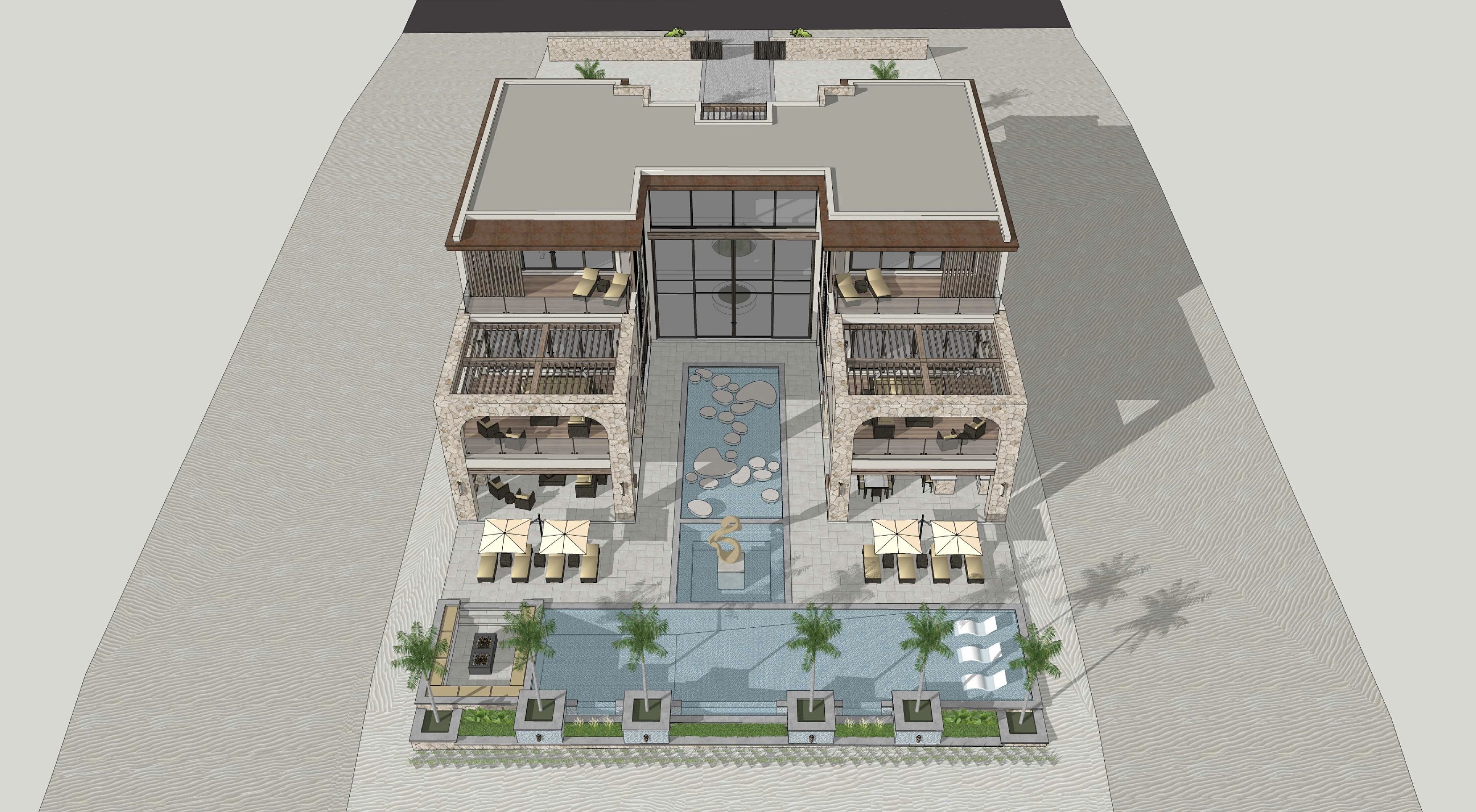 richard rogers exterior shot make me 3d model put more greenery and more trees architecture