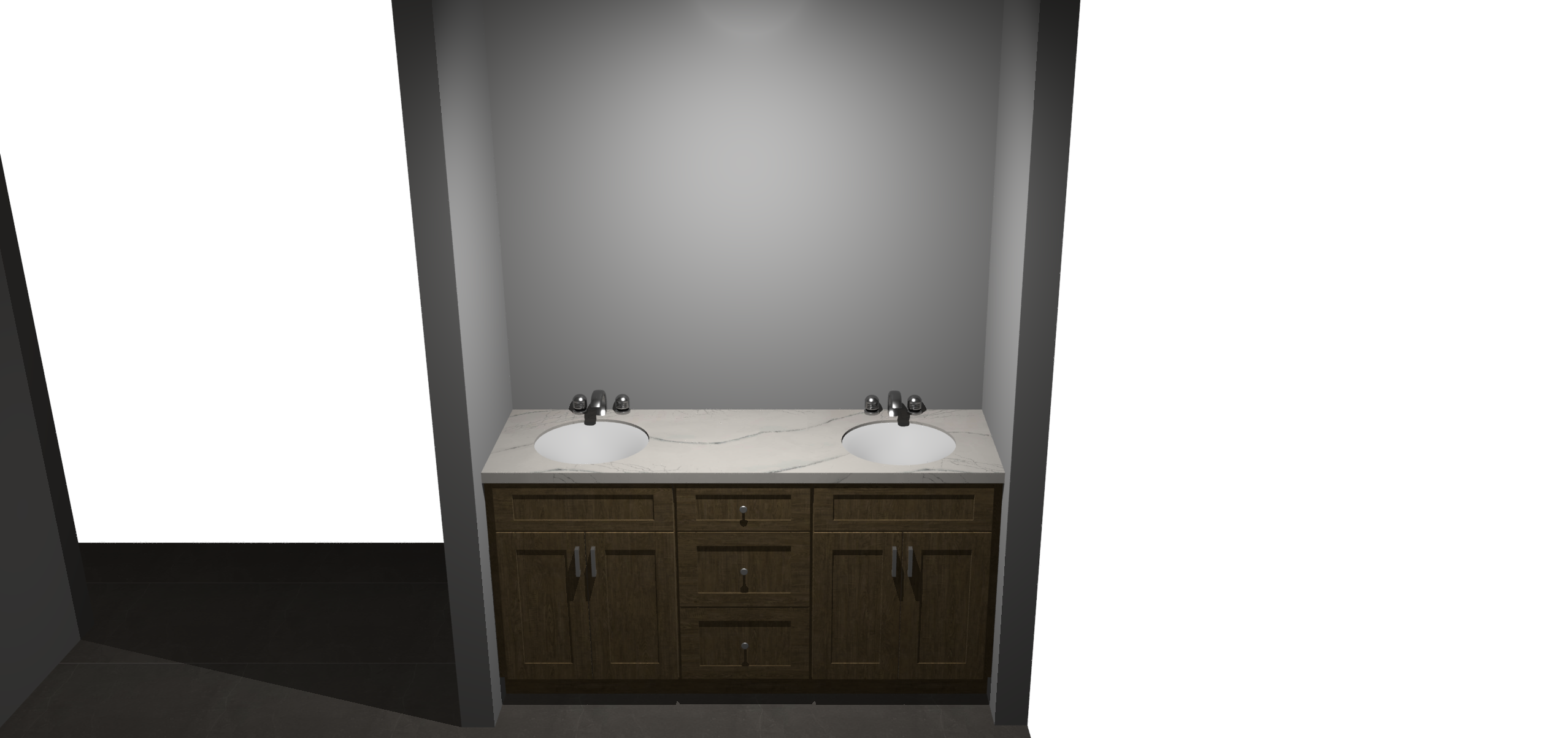 do not alter structure add wall mirror add nice lighting do not change cabinet color nice bathroom with quartz countertop quartz countertop is white with small veinings