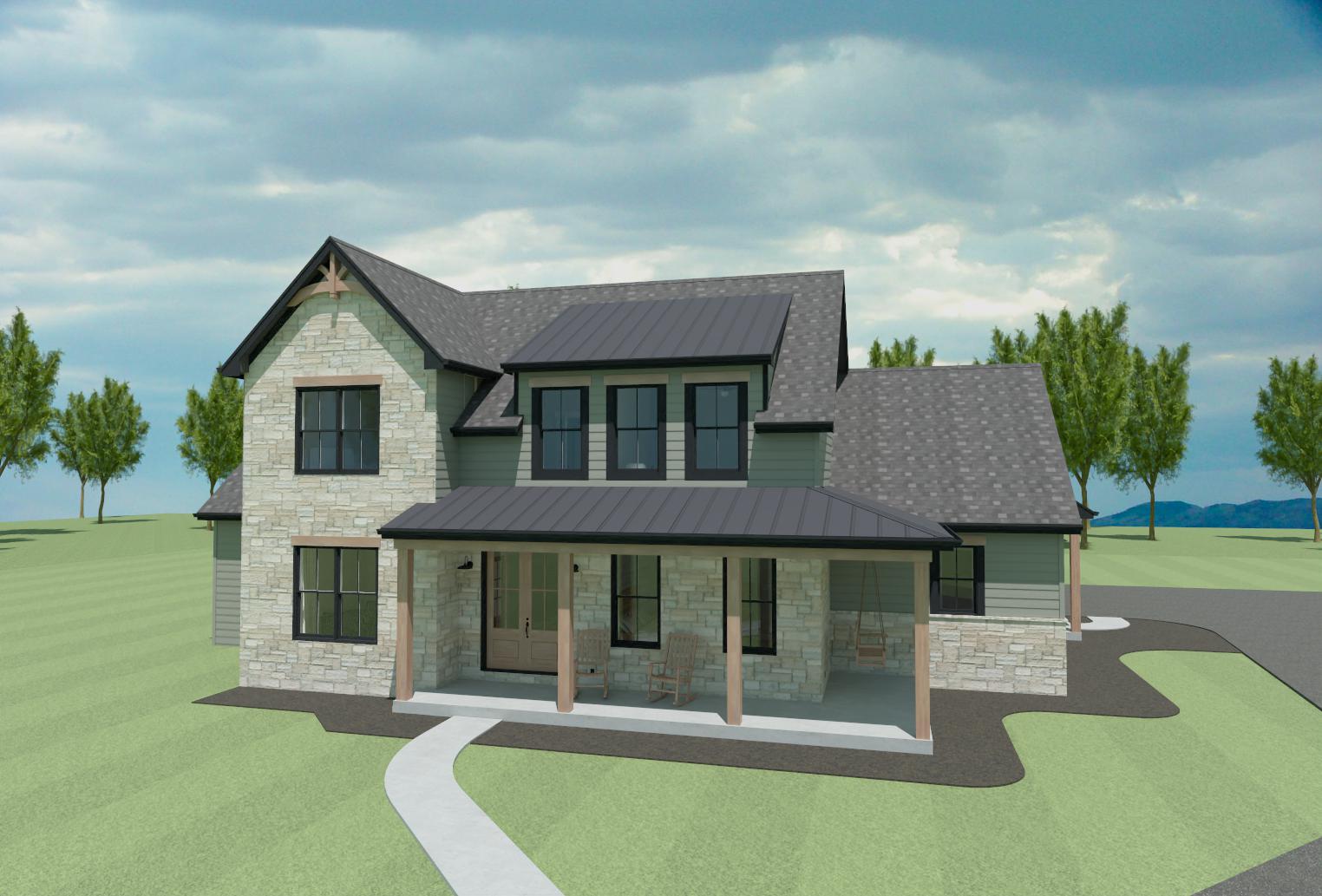 farmhouse cottage in a rural setting maintain house colors and textures clean crisp green siding with full mountain stone improve the landscaping just around the house driveway on the right side