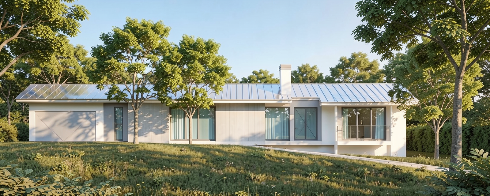 exterior shot render this elevation of a ski home in the high mountains of utah at powder mountain time of year is fall evening vegetation is mostly long mountain grasses there are some 30 firs to the left of the house up the hill a bit there are 25 aspen clusters both to the left and right side of the house the stone depicted on the house should be a warm grey dry the horizontal wood siding should be a dark grey brown shou sugi ban the eves should be dark bronze metal with layered drip edges gutters are fully concealed and not seen railings on the 2 decks are glass render at sunset with the south west to the left of the house window mullions should be dark bronze depending on the color mix you use the stone is warm grays and on all of the lower level areas bring the perspective up about 6 feet so your lookgin a bit down the driveway architecture