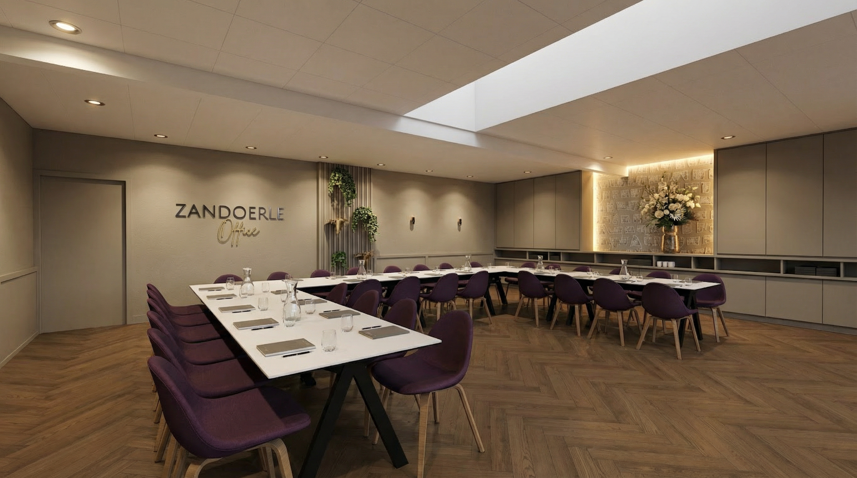 restyle the existing rendering to precisely match the fa ade language and color palette of the reference image while strictly preserving the original building geometry maintain the exact original camera angle and perspective building massing and proportions number of floors and exact floor heights slab positions and horizontal divisions window placement rhythm as defined by the existing floor structure surrounding context and urban elements do not add remove compress stretch merge or reinterpret floors the number of levels and their exact vertical alignment must remain identical to the source rendering apply a deep matte terracotta burgundy red metal fa ade rich oxidized red slightly desaturated adapt the fa ade treatment to fit the existing floor layout precisely ensuring horizontal bands align exactly with the original slab levels fa ade characteristics strict vertical window rhythm with slim evenly spaced vertical fins thin red mullions forming a tight rectangular grid soft rounded corners with continuous glazing wrapping the edges only if corners already exist in the original geometry subtle horizontal banding aligned perfectly with existing slab edges uniform monolithic cladding with minimal tonal variation fully glazed ground floor with warm interior lighting glass tone neutral to slightly cool grey with soft reflections frames and fa ade elements must remain within the same deep red tonal family lighting blue hour early evening cool blue grey sky with soft violet tones strong warm interior lighting 2700 3000k at ground level and selectively on upper floors to create contrast rendering style high end european architectural visualization photorealistic materials soft global illumination refined contrast subtle atmospheric mood do not modify perspective floor count slab alignment geometry context or composition adjust only fa ade materials glazing and lighting to match the reference image as closely as possible add sunset light