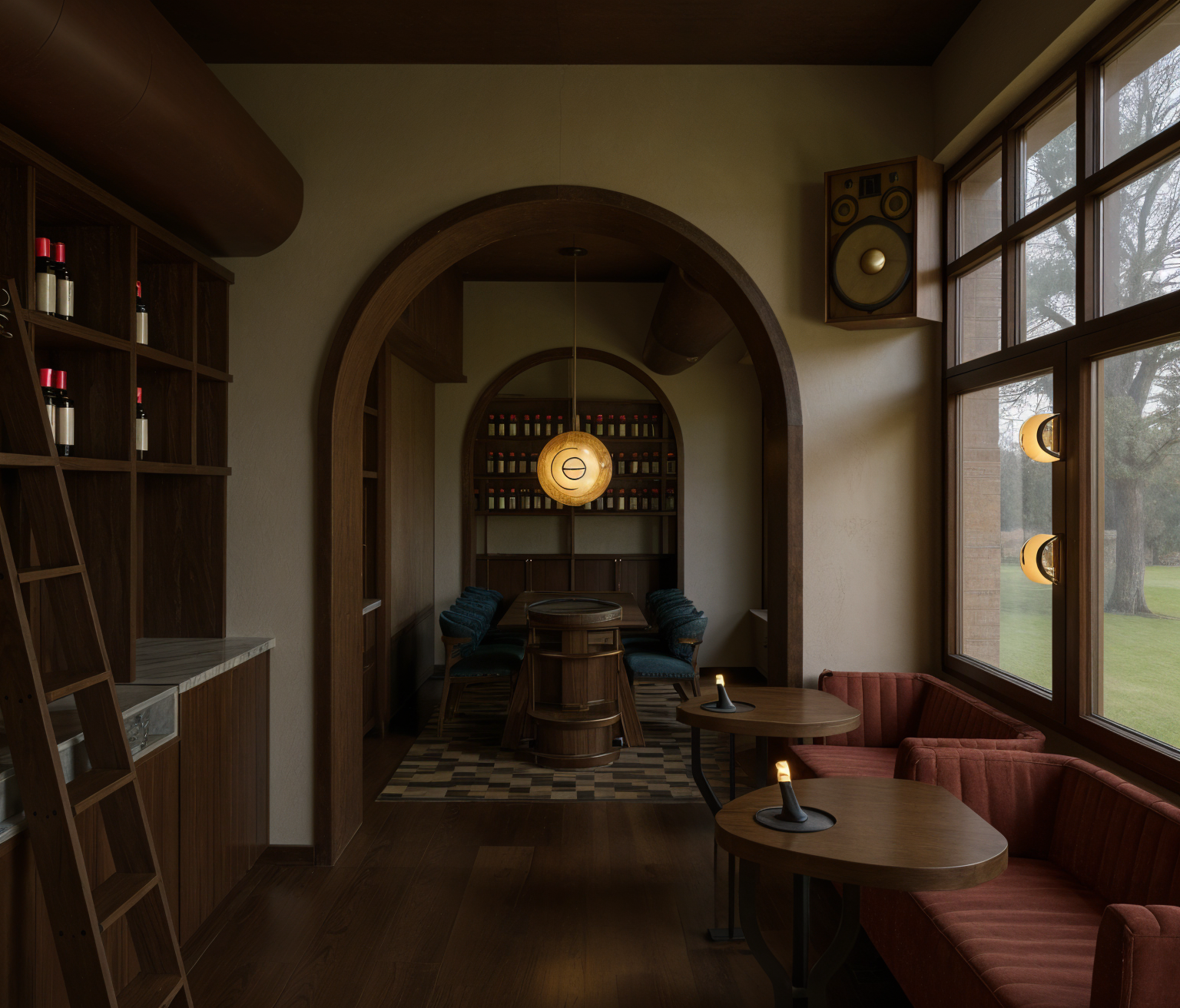 create realistic image turn wall lights on led lights under hanging planter box pendant lights include people working and sitting at tables day time image