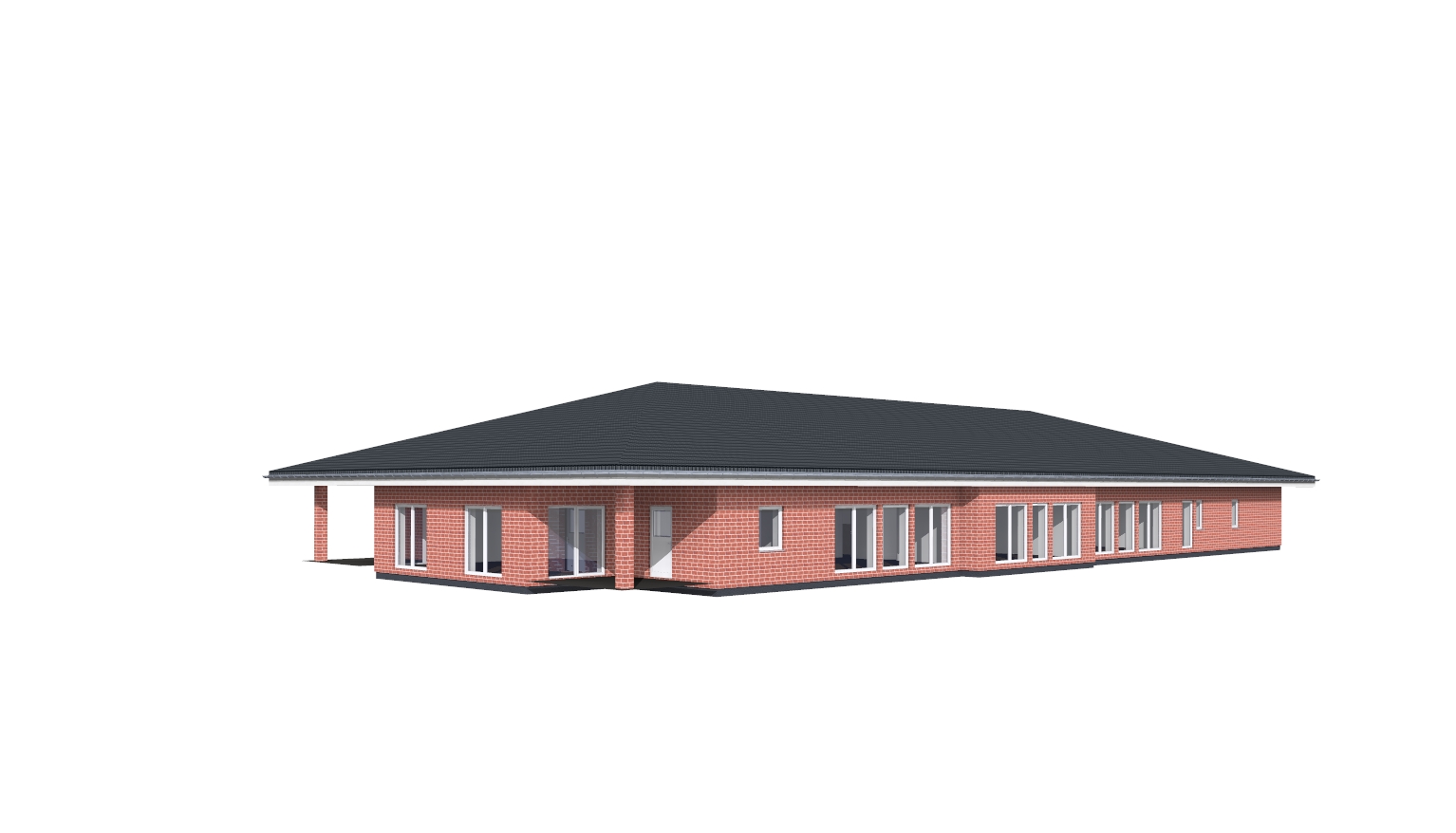 create a highly photorealistic rendering of a single family house based strictly on the provided architectural image the architecture must remain completely unchanged preserve all proportions geometry facade design materials colors window placements and roof shape exactly as given do not reinterpret or redesign any architectural elements the goal is a realistic real world photo look not a stylized render lighting and atmosphere use natural daylight ensure physically correct lighting reflections and shadows avoid exaggerated contrast saturation or dramatic effects materials render all materials with high realism such as plaster wood glass roof tiles and metal include subtle natural imperfections and texture variation keep surfaces clean but not artificial garden and surroundings design the garden like kindergarden include a well maintained lawn restrained planting and realistic layout ensure no plants are placed directly against the facade keep a realistic distance vegetation use typical plants such as small shrubs ornamental grasses hedges or boxwood keep planting structured not too dense and not decorative in an artificial way avoid exotic or oversized plants outdoor furniture include a swing and a climbing frame for small children furniture should look natural used but well maintained not staged or overly styled do not overcrowd the scene details add small realistic imperfections for authenticity include elements like a simple pathway driveway or terrace if appropriate keep everything coherent and believable camera and composition use a perspective similar to professional architectural photography eye level or slightly elevated viewpoint natural depth of field sharp details no distortion important constraint do not change the architecture in any way only improve realism lighting materials and environment