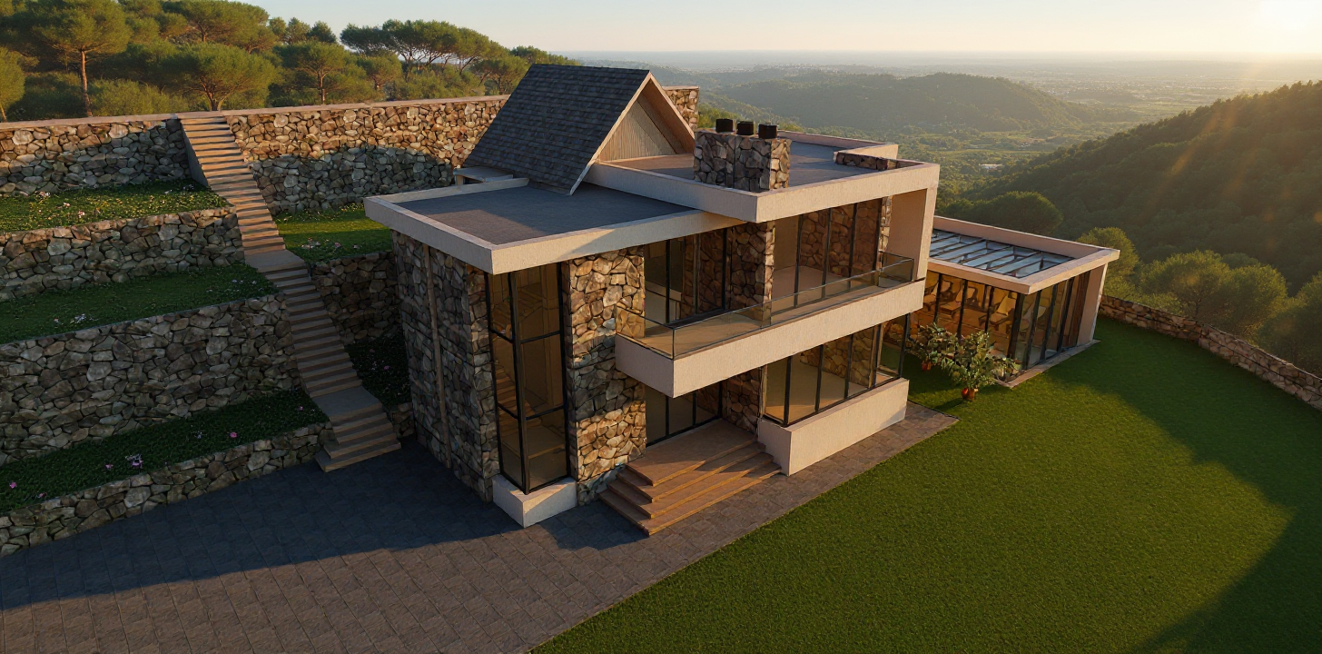 replace the two middle windows with a two panel bay window in anthracite gray color architecture