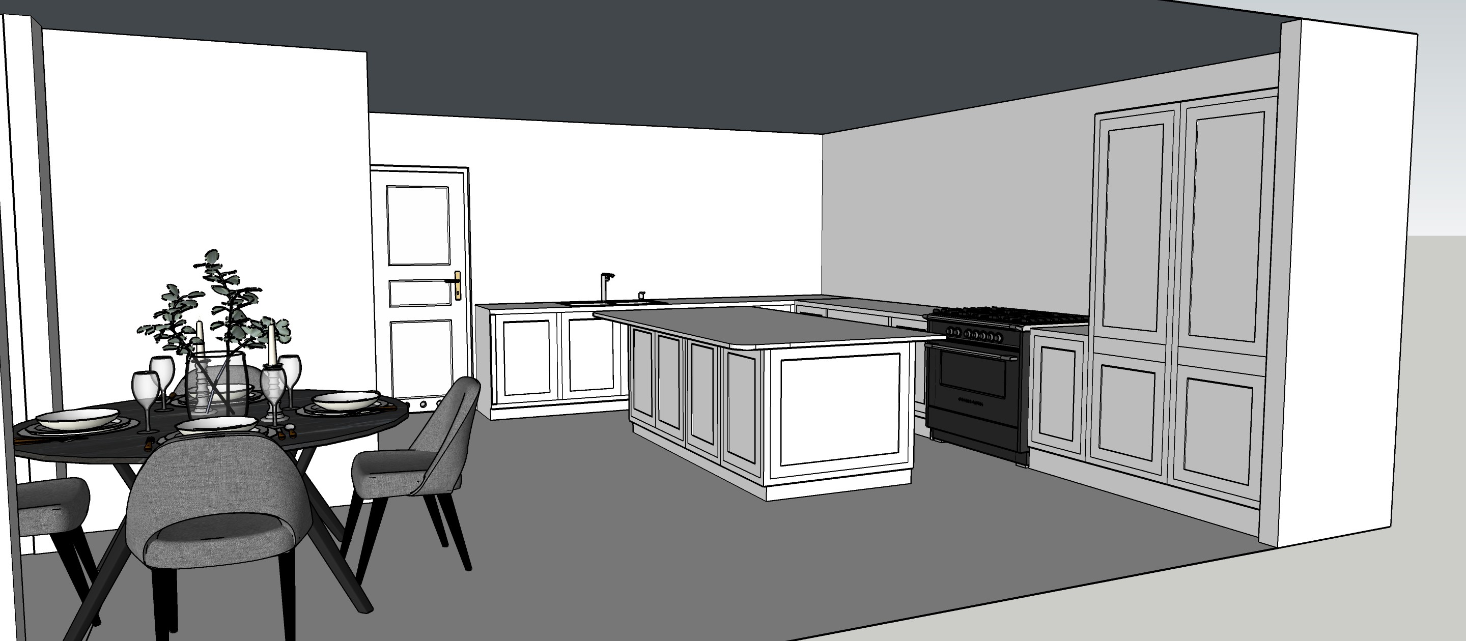 add spotlight in the ceiling light green to the shaker doors and chrome handles oak floor