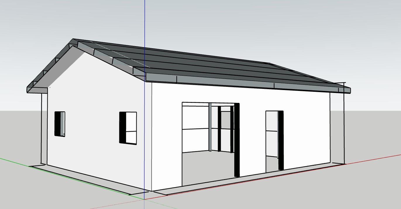 white steel wall cladding grey steel roof cladding nice doors and windows landscaped with driveway and stone walkway