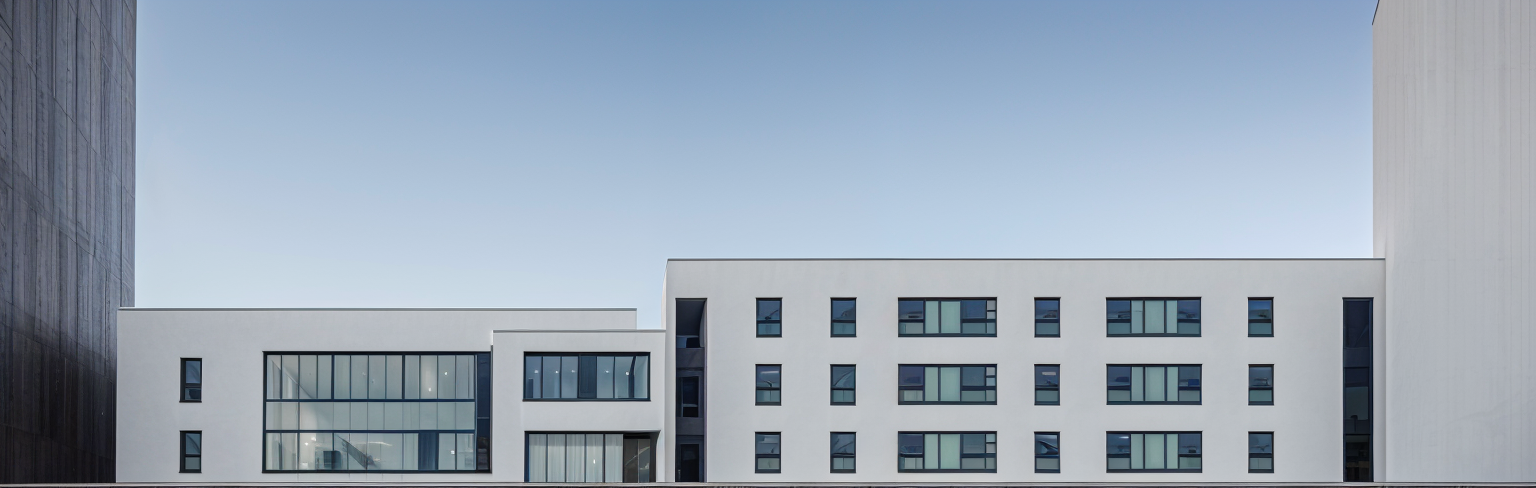 modernist interior shot render a modern and sleek transit station with a light and airy atmosphere the station has a timber truss roof with a light blonde wood color and translucent glass panels the sky should be clear with a soft blue color accentuated by a few wispy clouds the station sign reads oakridge 41st avenue with a dark blue background and white lettering the pillars are metallic silver and the flooring is a clean grey concrete include green trees with lush foliage along the path and vibrant purple flowers in a well maintained garden bed the atmosphere is lively with a few people casually walking or standing depicting a pleasant day add gentle sunlight to emphasize warmth and tranquility architecture