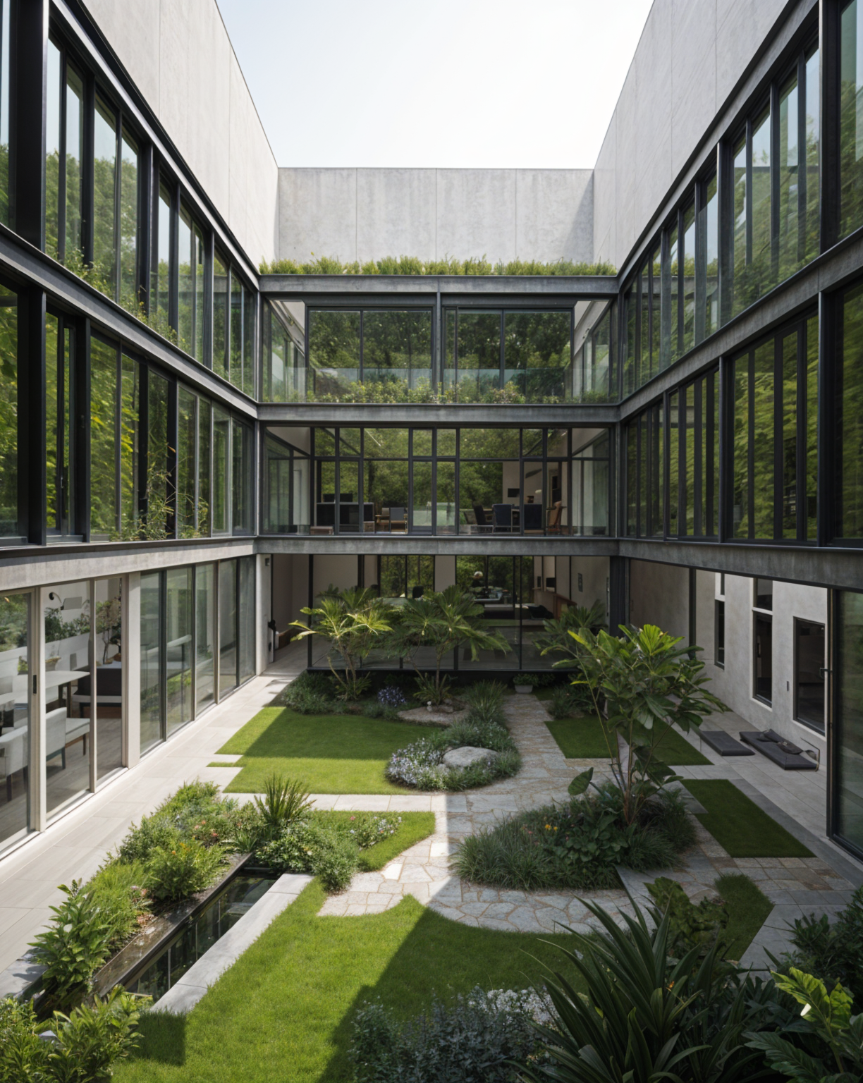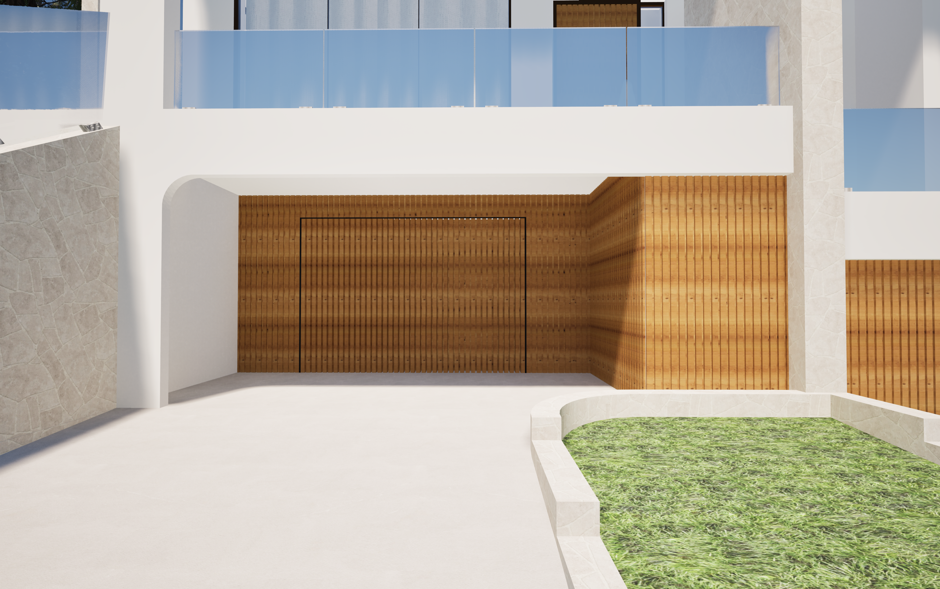 the front door must remain exactly as submitted do not change the door size shape proportions frame glazing panels hardware colour or material do not replace redesign stylise or reinterpret the door in any way the front door is fixed geometry and must not be modified under any circumstances do not change any shapes forms geometry or proportions do not add any new elements no buildings objects furniture vegetation or details do not remove any existing elements do not remove or alter any glass railings balustrades do not modify replace or reinterpret materials or textures only allowed adjustments improve realism only adjust lighting shadows reflections and surface realism material type colour and placement must remain identical no creativity no improvisation no assumptions final render must match the original model exactly with realism improvements only treat this model as a locked bim export geometry edits are prohibited render only pass no geometry regeneration allowed all glass railings glass balustrades must remain exactly as submitted do not remove hide simplify merge fade or replace any glass railings do not convert glass railings into solid walls open edges or empty voids do not change glass thickness height framing fixings or transparency glass railings are mandatory safety elements and must be fully visible in the final render