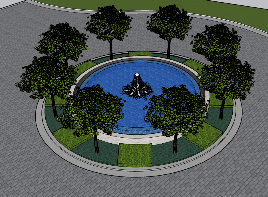 add lights to the fountain add lights to the trees underneath