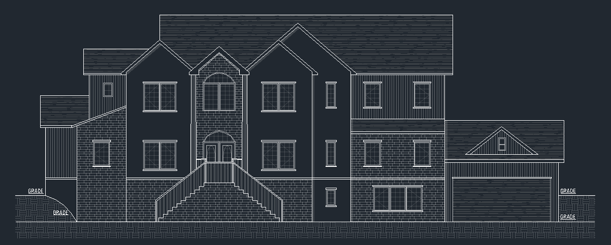 make the brick areas gray stone the vinyl siding areas with dark gray vertical vinyl siding and the empty areas white also the stairs only come up from the sides not the front
