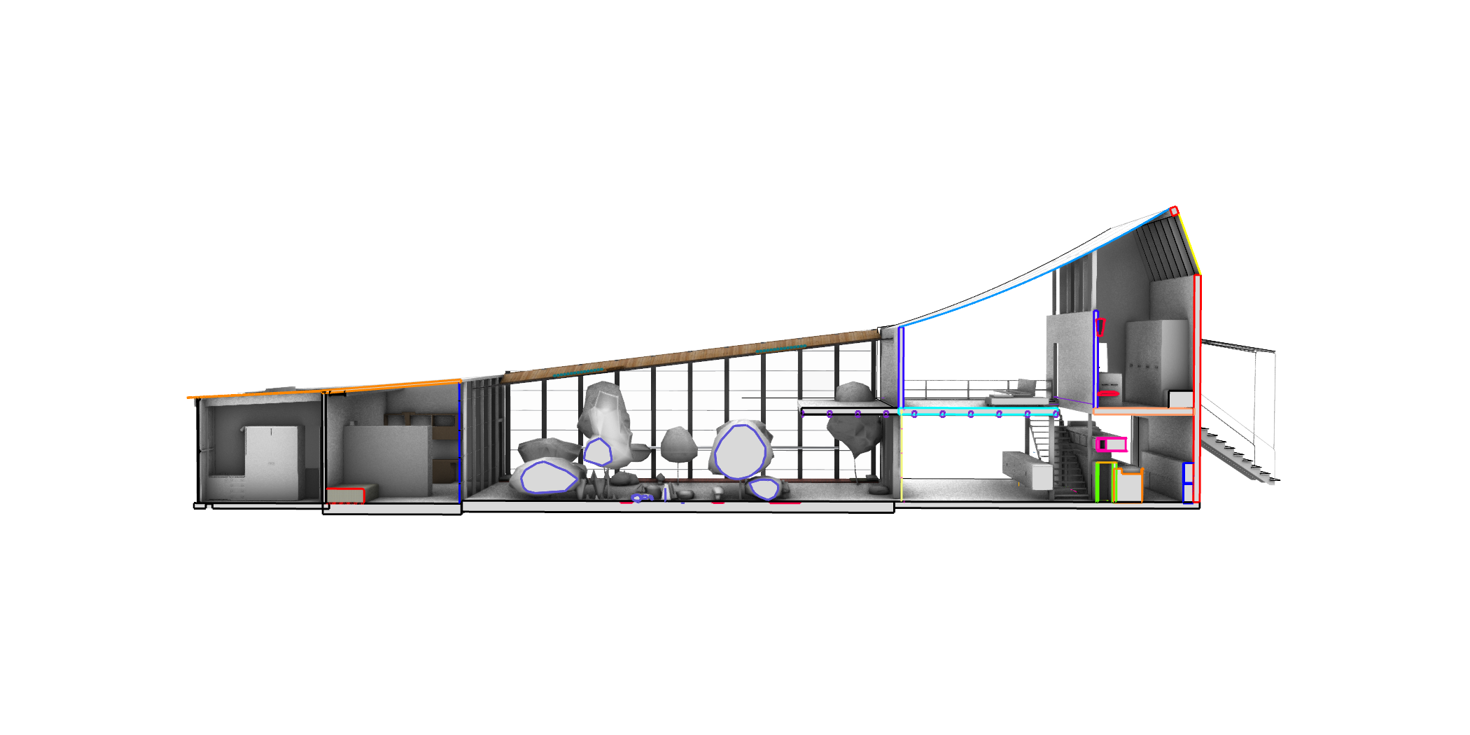 make white background make line drawing floorplan make black and white no dimensions show house structure beneath the house