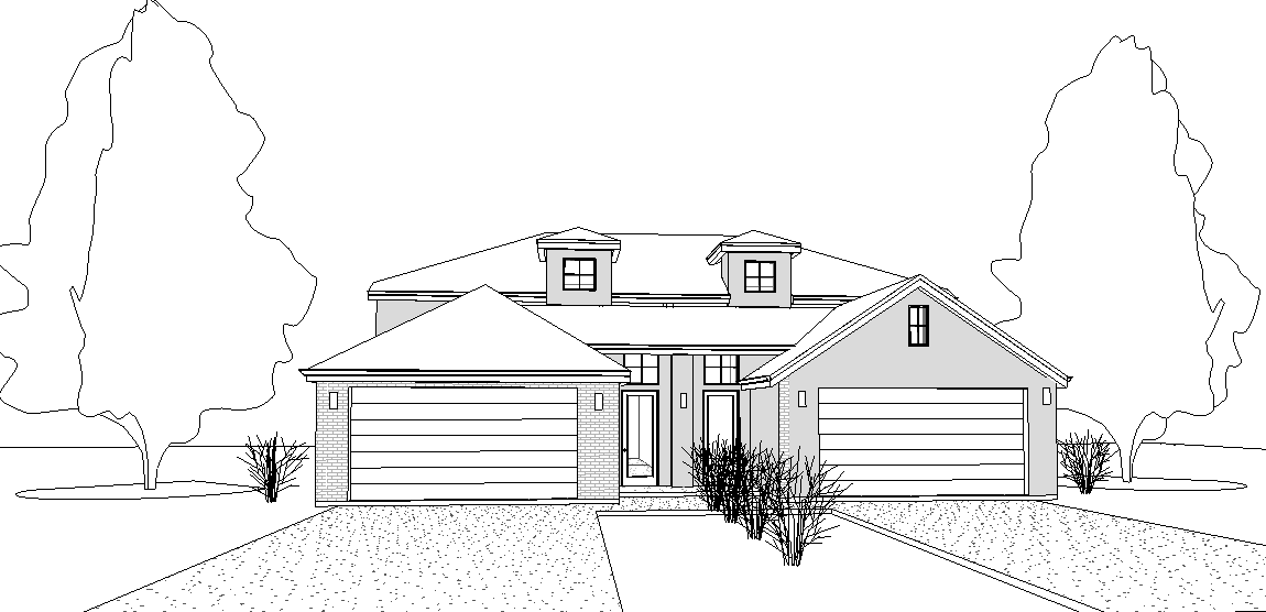 trinational brick duplex homes brownish gray brick grey trim dark brown roof over casted day