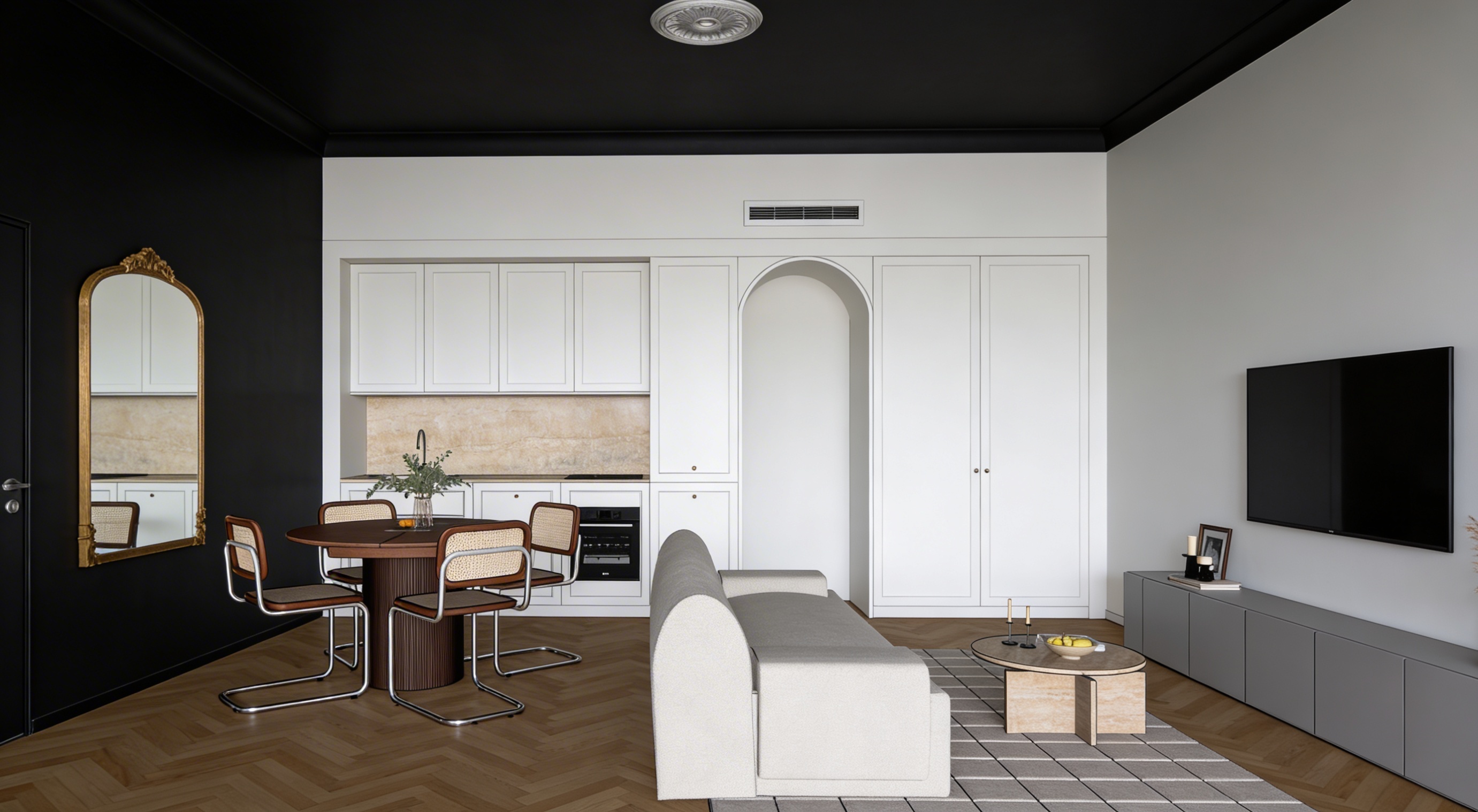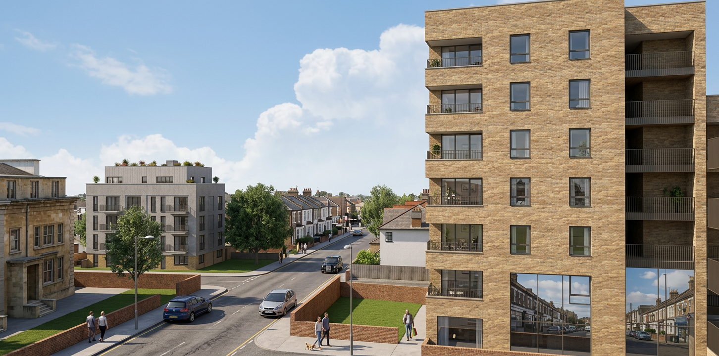 buiding on the left has a rendered finish