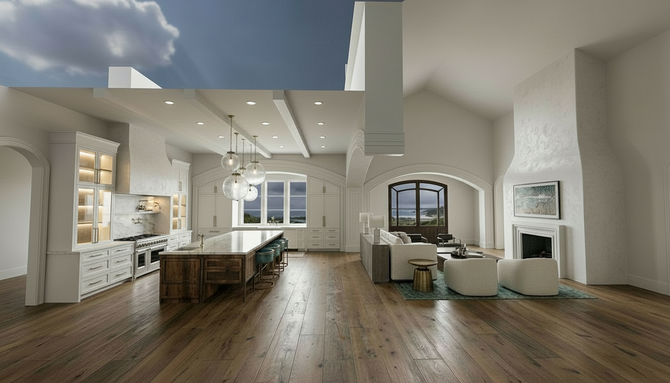 brighten and add wooden beam to pitch in living room