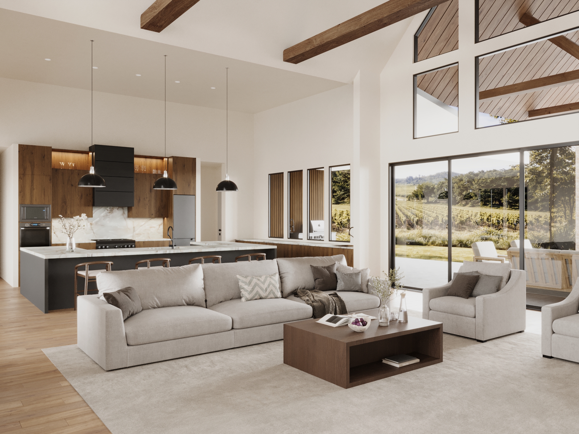 international style interior shot please add re furnish this room with more impressive items also add color make the appliances all black make it more like a 3 5mm home as far as interior aesthetic architecture