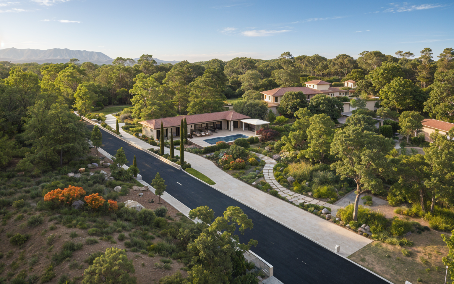 photorealistic render of the uploaded house elevation first floor exterior walls burnt red brick warm reddish tone realistic brick texture second floor exterior walls dark olive green shingles siding uniform and clean roof matte black gabled roof sharp clean lines doors and window frames black surroundings autumn season in the u s trees with orange yellow and red leaves some fallen leaves on the ground warm natural daylight do not alter the architecture or proportions of the house keep the same windows and layout no people no cars no text no extra objects only apply the specified materials and environment architecture
