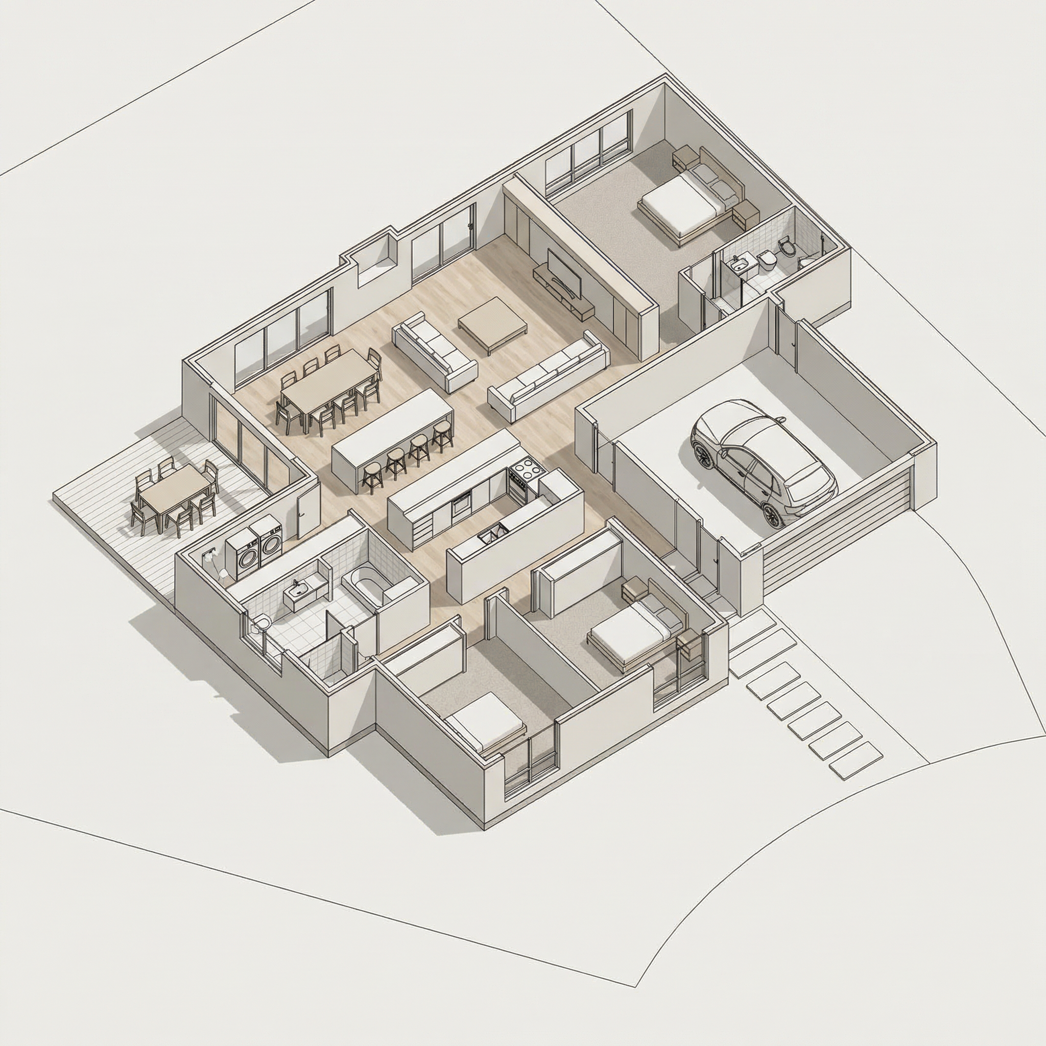 transform the provided elevation into a hyper realistic interior photograph that is indistinguishable from a real professionally shot interior design photograph this must read as a real space captured by a camera not a rendering not a visualization not architectural cg not concept art and not an illustration geometry lock non negotiable preserve the exact original geometry layout proportions ceiling details wall depths panel divisions openings doors cabinetry locations millwork dimensions built ins and circulation paths with zero architectural changes nothing may move scale simplify or be reinterpreted geometry must remain absolutely unchanged camera derivation critical derive the camera position height angle and framing strictly from the uploaded elevation eye level interior photography centered or naturally balanced composition 24 35mm interior lens feel no dramatic angles no stylized framing do not reuse or approximate camera framing from any previous image remove all drawing artifacts completely remove all linework cad edges drafting outlines diagrammatic shapes sketch artifacts nothing may appear outlined flat schematic or illustrative the elevation must be visually reinterpreted as a finished real interior photograph material realism rules wood if present smooth solid plank material extremely subtle restrained grain matte or soft satin finish only no graphic patterns no decorative striping no visual noise wood must absorb light gently never glossy or sharp fabric upholstery if present soft compression subtle seams gentle shadowing natural fabric texture no flat color blocks stone slabs if present light natural veining soft organic variation low contrast no symmetry no bold or busy patterns stone must feel heavy and grounded walls fine surface texture slight tonal variation never flat paint edge construction realism all edges corners joints and transitions must be softly broken and physically realistic no razor sharp corners no cgi perfect edges slight construction tolerances only everything must read as fabricated installed and dimensional lighting photographic behavior lighting must behave like real high end interior photography natural daylight only unless otherwise specified realistic light bounce gentle shadow falloff uneven exposure distribution subtle brightness variation across surfaces avoid studio lighting uniform illumination over clean exposure global illumination look slight softness is preferred over sharpness camera image imperfections very important introduce subtle photographic characteristics gentle lens softness micro exposure variation natural contrast roll off mild atmospheric depth primary plane sharp background slightly softer the image must feel captured not generated absolute constraints no creative interpretation no stylization no exaggeration no added or removed elements any deviation from the original elevation geometry or intent is unacceptable negative prompt always include architectural rendering 3d visualization cgi unreal engine octane vray sketchup look flat textures graphic lines outlined edges over sharpened studio lighting concept art illustration ai look plastic materials glossy wood high contrast grain perfect symmetry do not change materials