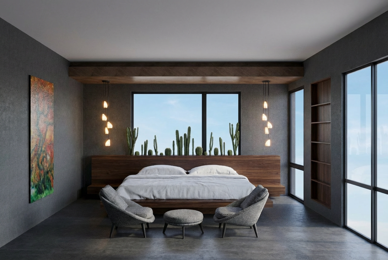 photorealistic exterior render of a renovated traditional galician rural house maintain exact geometry proportions openings and roof shape two story volume ground floor in exposed irregular natural stone masonry upper floor finished with smooth white lime render pitched roof with traditional clay tiles and visible eaves facade composition with simple rectangular black aluminum windows minimal frames and a large sliding glass door at ground level interior warm lighting visible through the glass foreground with wet ground rural path and natural vegetation including moss and grass include an old low stone wall in the front left corner overcast sky soft diffuse light slightly foggy atmosphere realistic humidity and textures style contemporary rural minimalism high realism natural materials subtle contrast between traditional stone and clean white render neutral tones cinematic composition no changes to structure volumes openings or materials