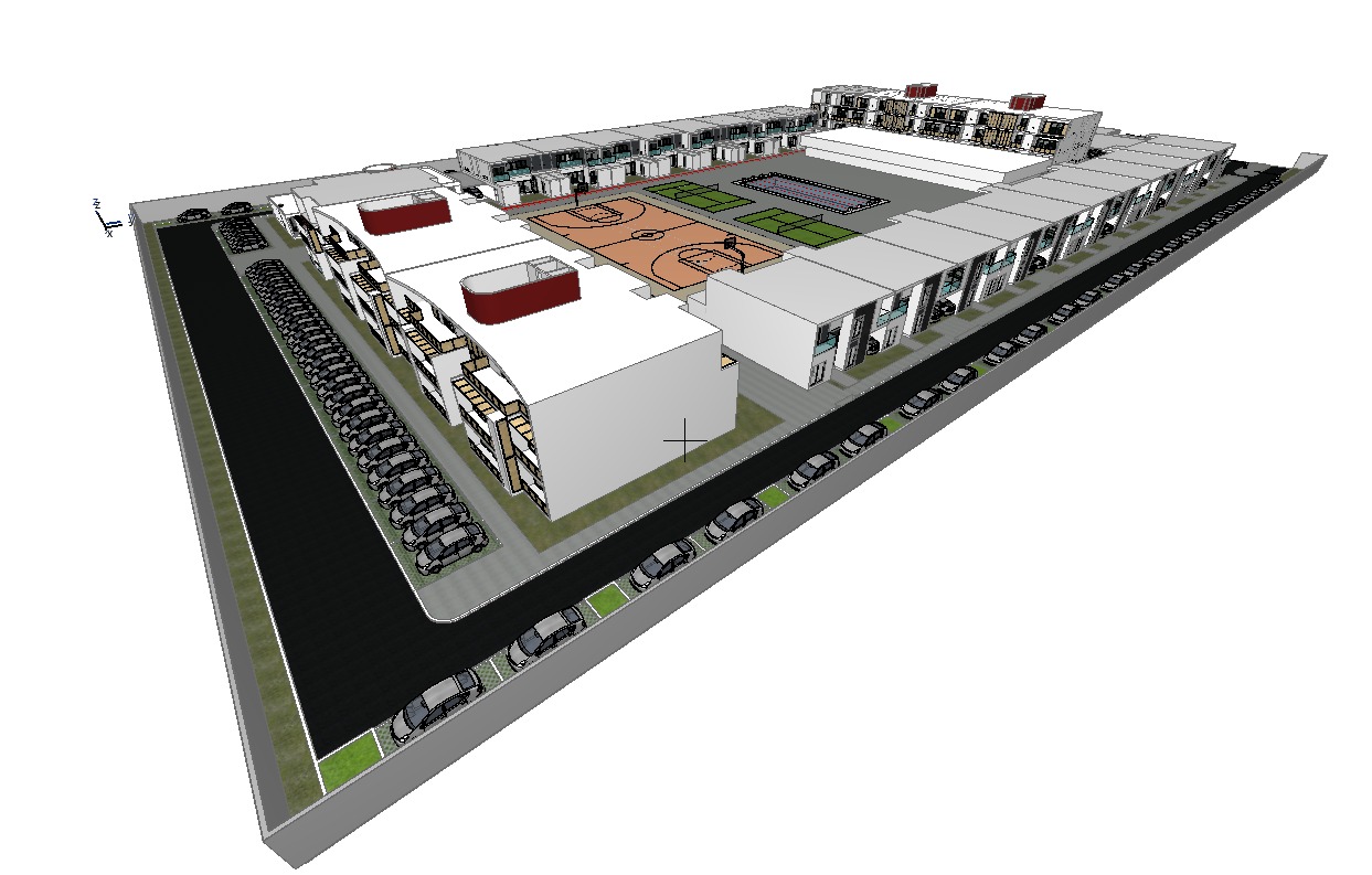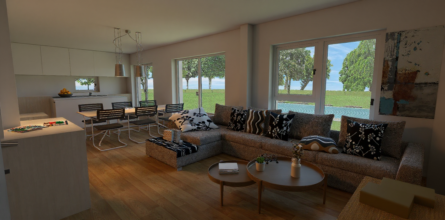 make this render photorealistic add shadows contrast light enhance textures add trees transform this raw archicad 3d view printscreen in a photorealistic winning image