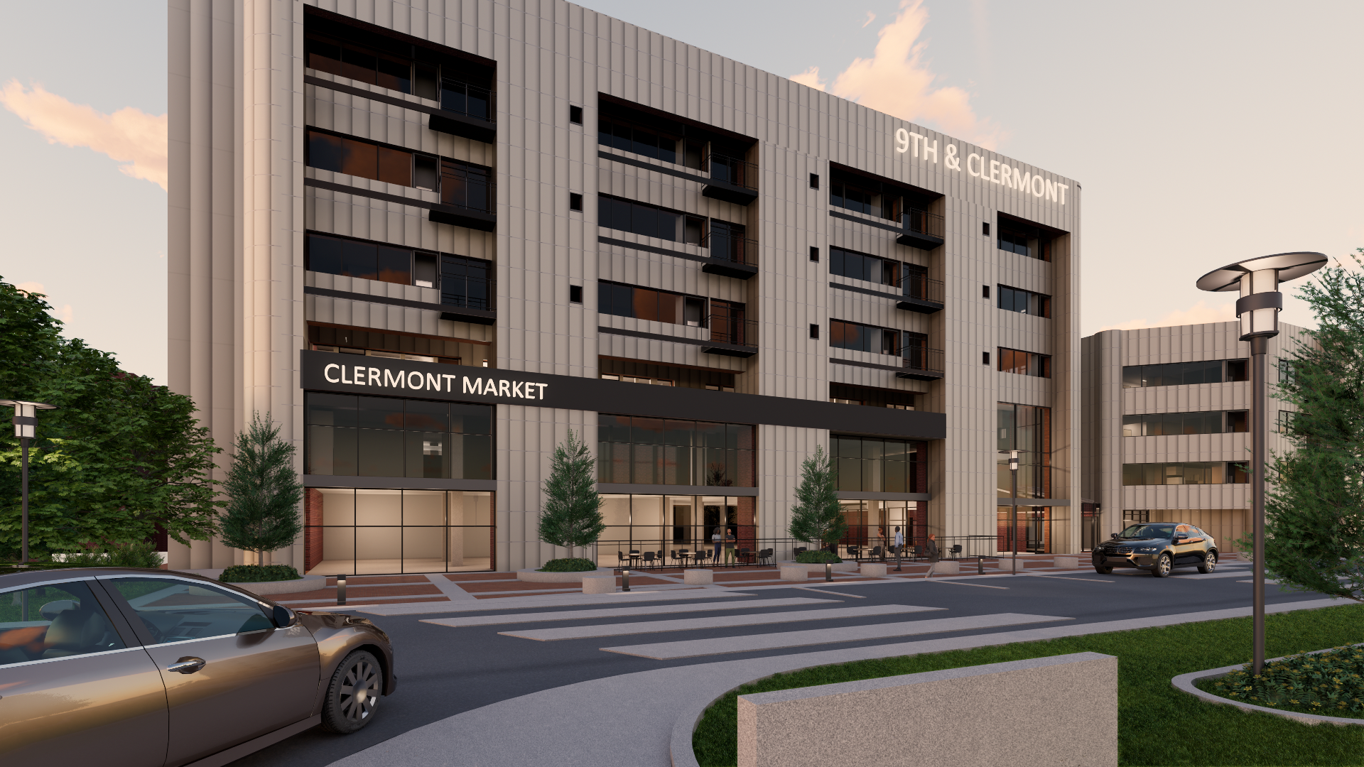 tone down the paneling on the facade add lights showing in all windows