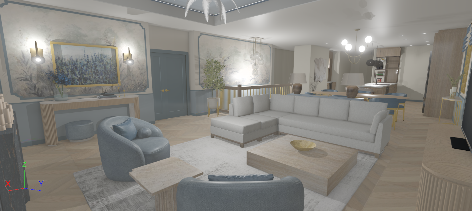 hyper realistic render of the living room soft lighting realistic shadows ultra realistic high detail textures