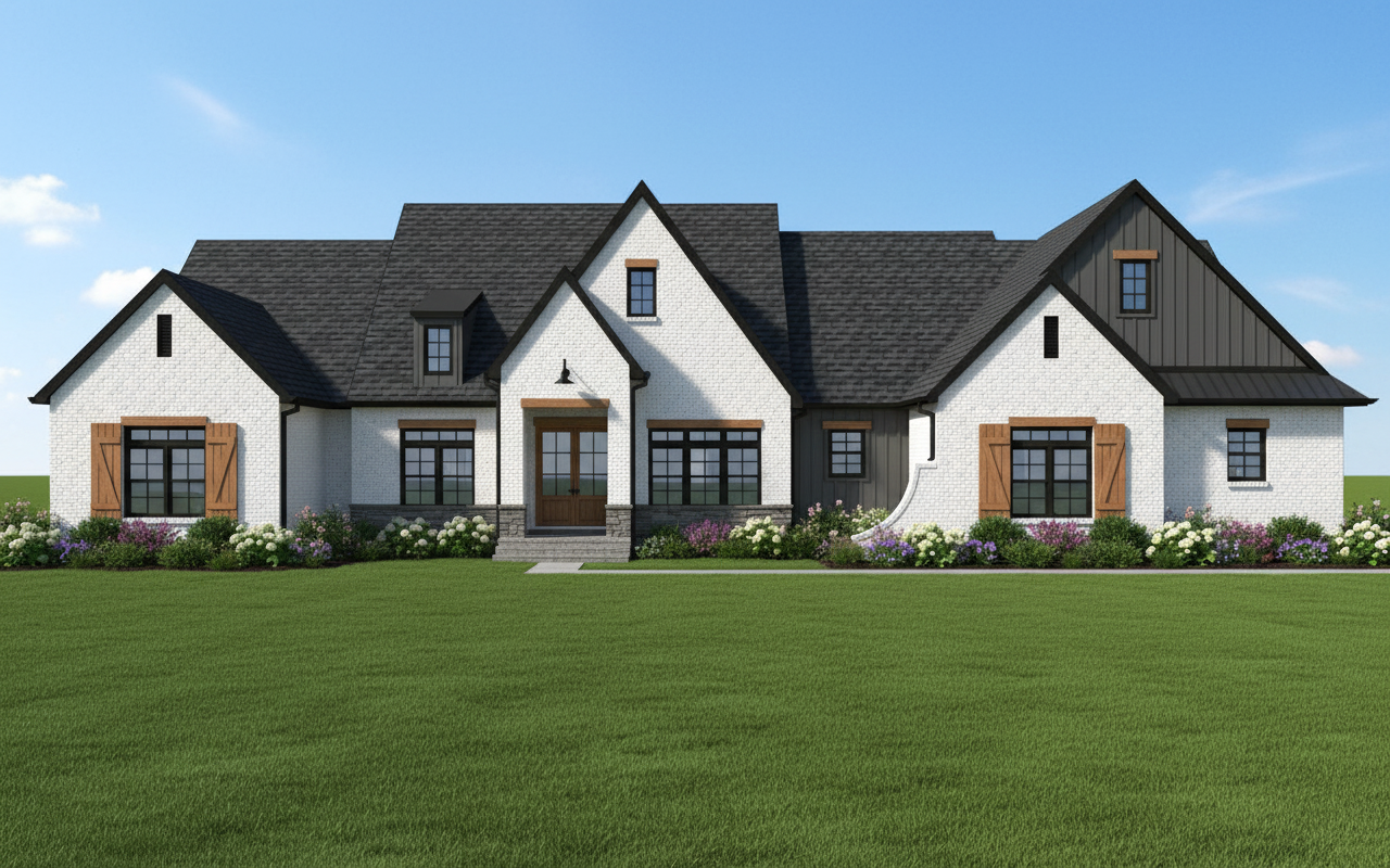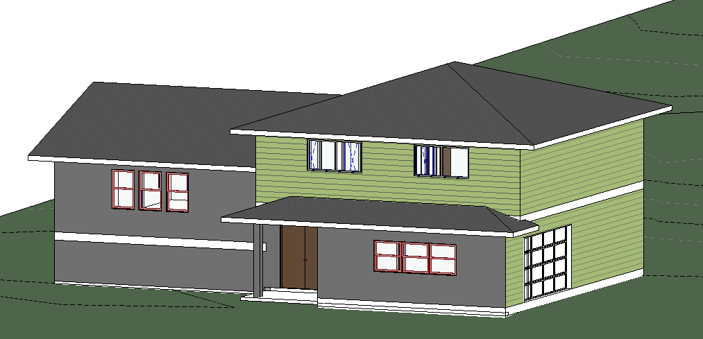 make look realistic use natural lighting make day time add landscaping with plants shrubs flowers and surrounding trees add rock to the bottom of the house on the front the right side has a garage door