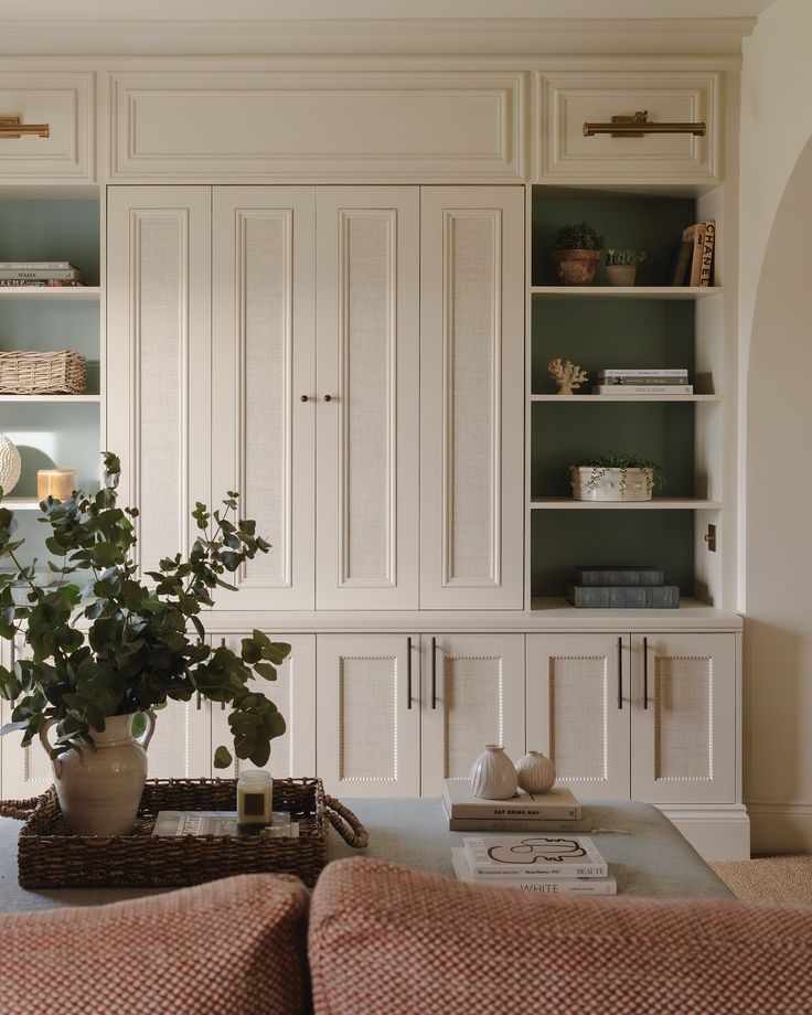 remove all furniture in front of the media wall and just have the media wall on its own remove plant