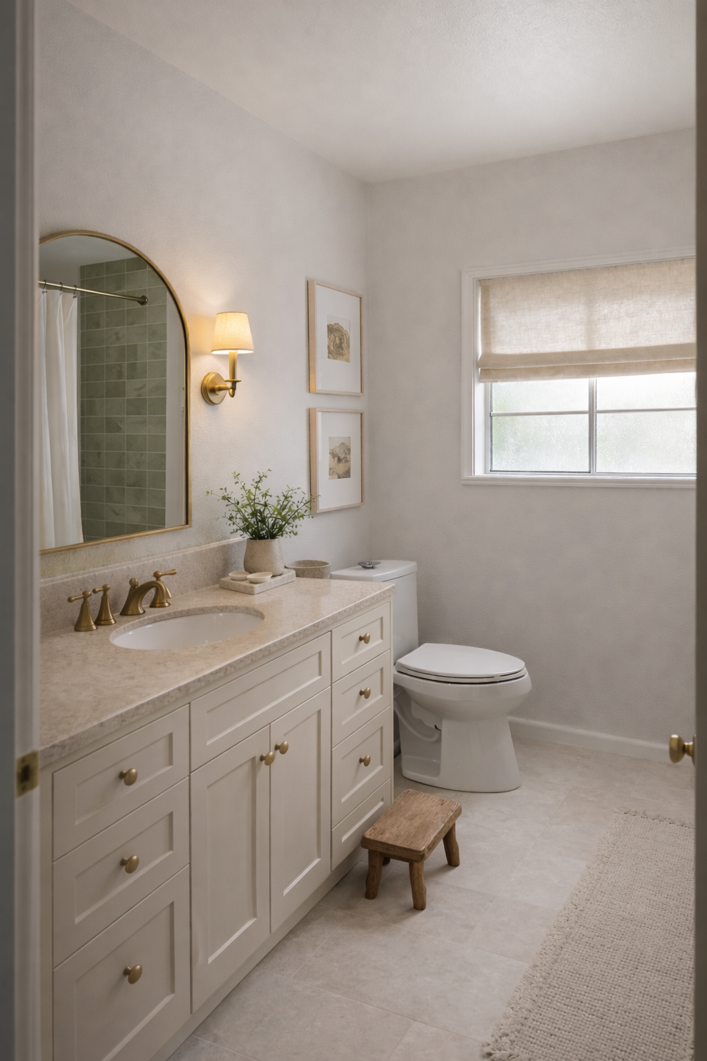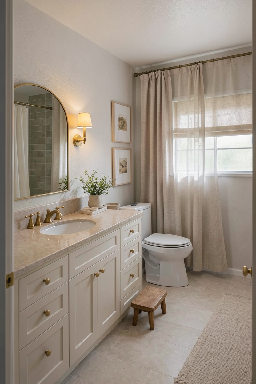 extend the same tile in the shower and add it to the wall behind the shower curtain keep everything else in the scene the exact same