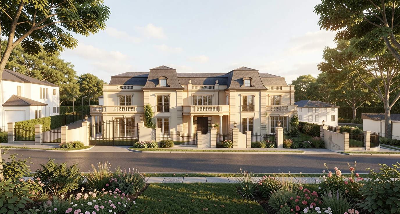 rotate the house 90 degrees clockwise so it faces the left side of the image