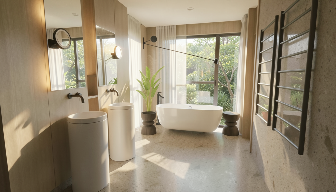 everything that is grey in the image is wood tone the vanity and drawers are white