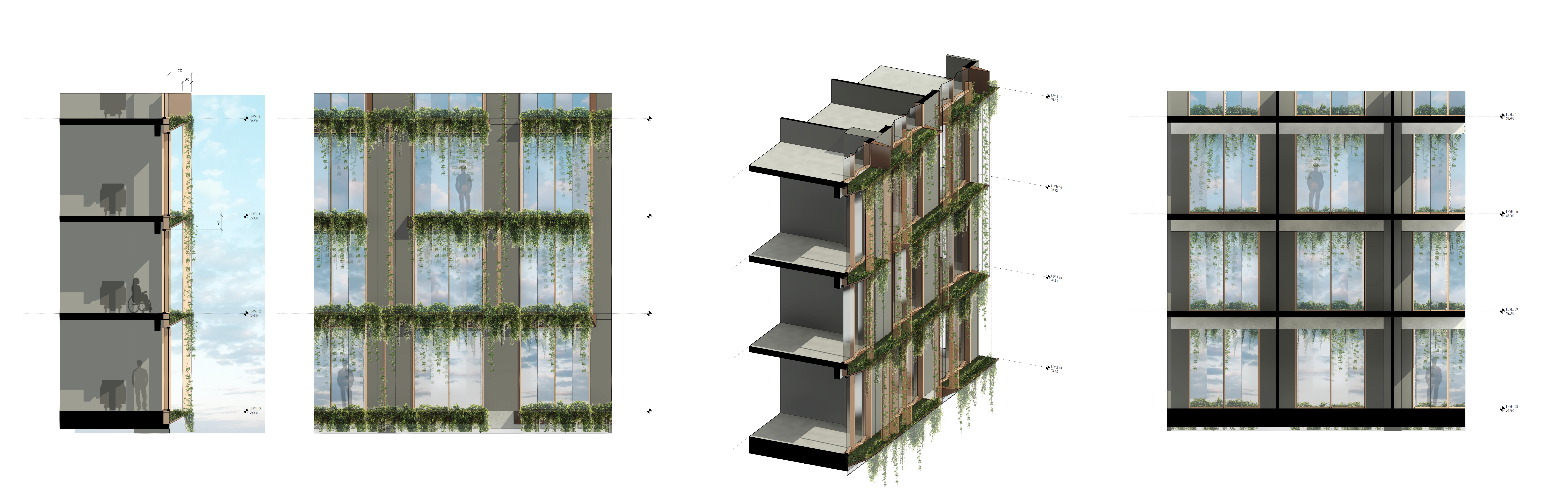 render these views as hyper realistic renders with realistic greenery glass reflections