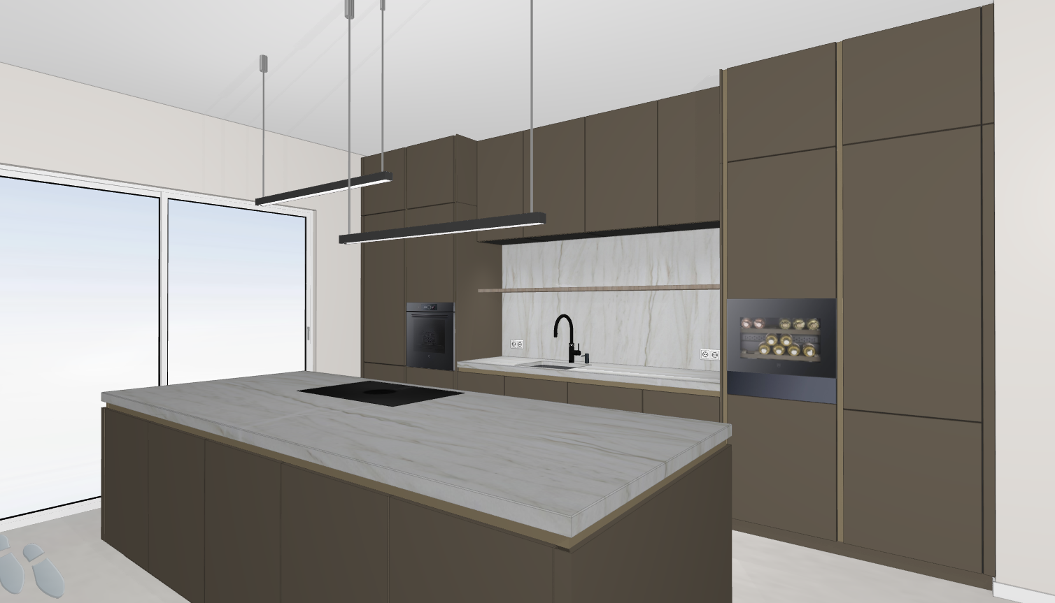 fenster mit sehr d nne gardine nur die h lfte nische mit indirekte beleuchtung mit warmwei licht griffmulde unter der arbeitsplatte mit sehr d nne beleuchtung