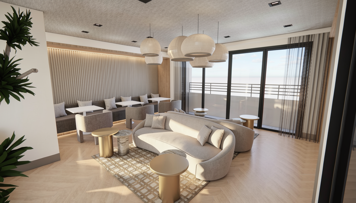 use the uploaded render as the exact base image maintain the original camera angle lens length perspective framing composition and spatial proportions exactly as shown do not alter architectural elements wall locations ceiling details millwork flooring layout window placement or built ins preserve all existing materials finishes textures paint colors tile stone wood tones and lighting design exactly as they appear maintain the same daylight direction shadow quality exposure and overall color temperature keep all furniture decor styling and layout exactly the same unless explicitly instructed otherwise do not reinterpret the design restyle the space modernize it or adjust proportions only modify the specific items that will be listed in the next prompt the goal is to enhance realism and material fidelity while preserving the original design intent 1 1 output should be photorealistic with natural material depth accurate reflections realistic fabric texture subtle imperfections and true to life lighting eliminate the 4 groups of small nesting tables by the sofa show an elevated petrified organic natural finish coffee table
