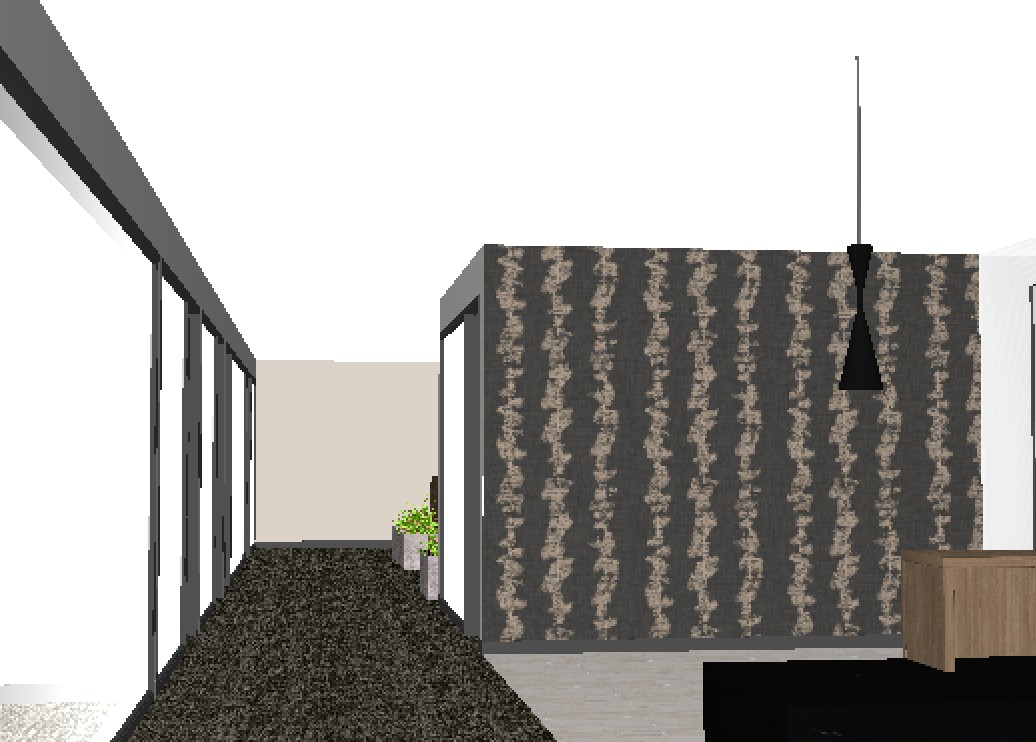 render photo realistic ceiling is standard office grid with lights windows on left are of offices