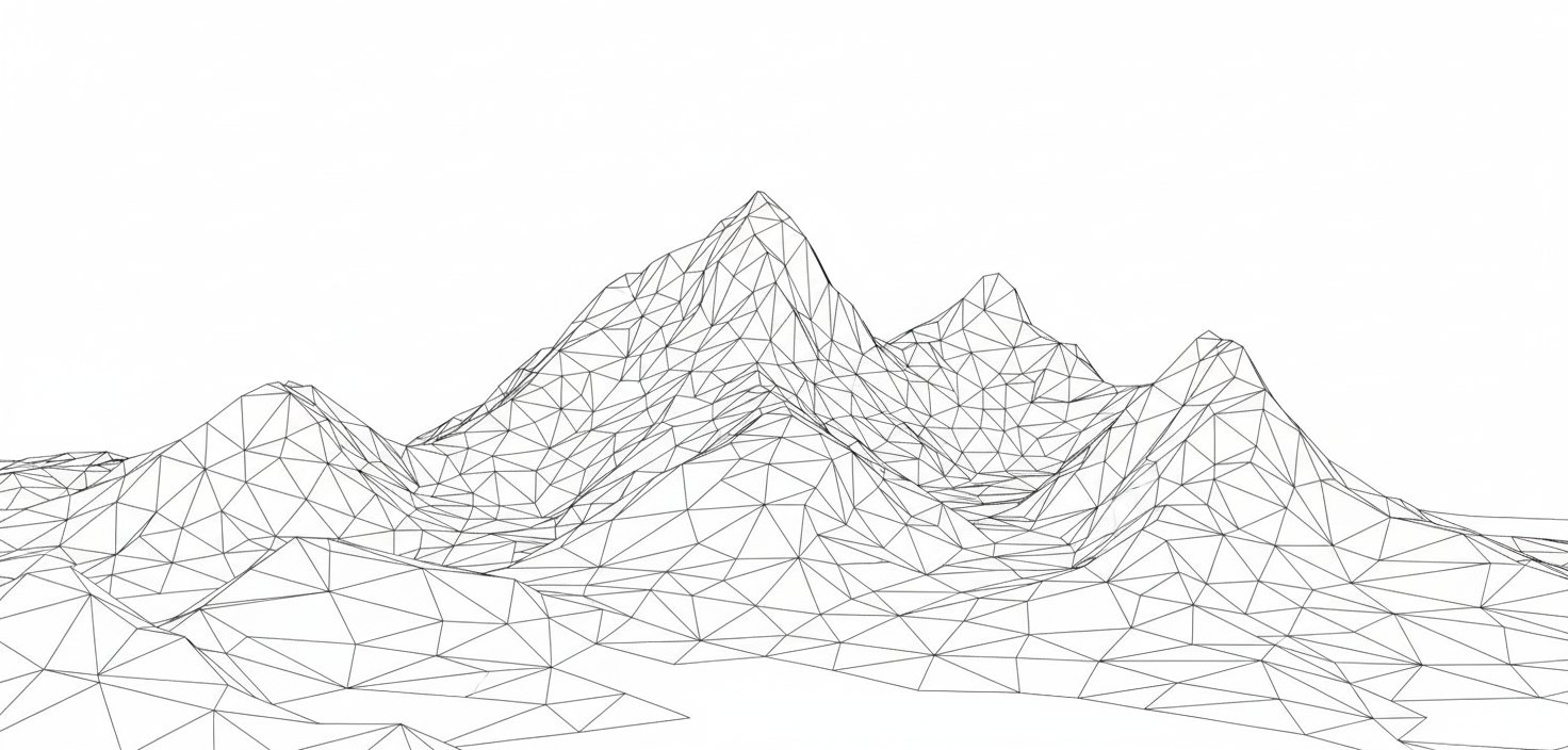 convert this terrain into a wireframe visualization with a completely black background color the contour and mesh lines according to altitude purple for the lowest elevations then blue green yellow orange and finally red for the highest peaks use thin crisp wireframe lines only no shading or surfaces add more lines in the background to add more dept to the terrain