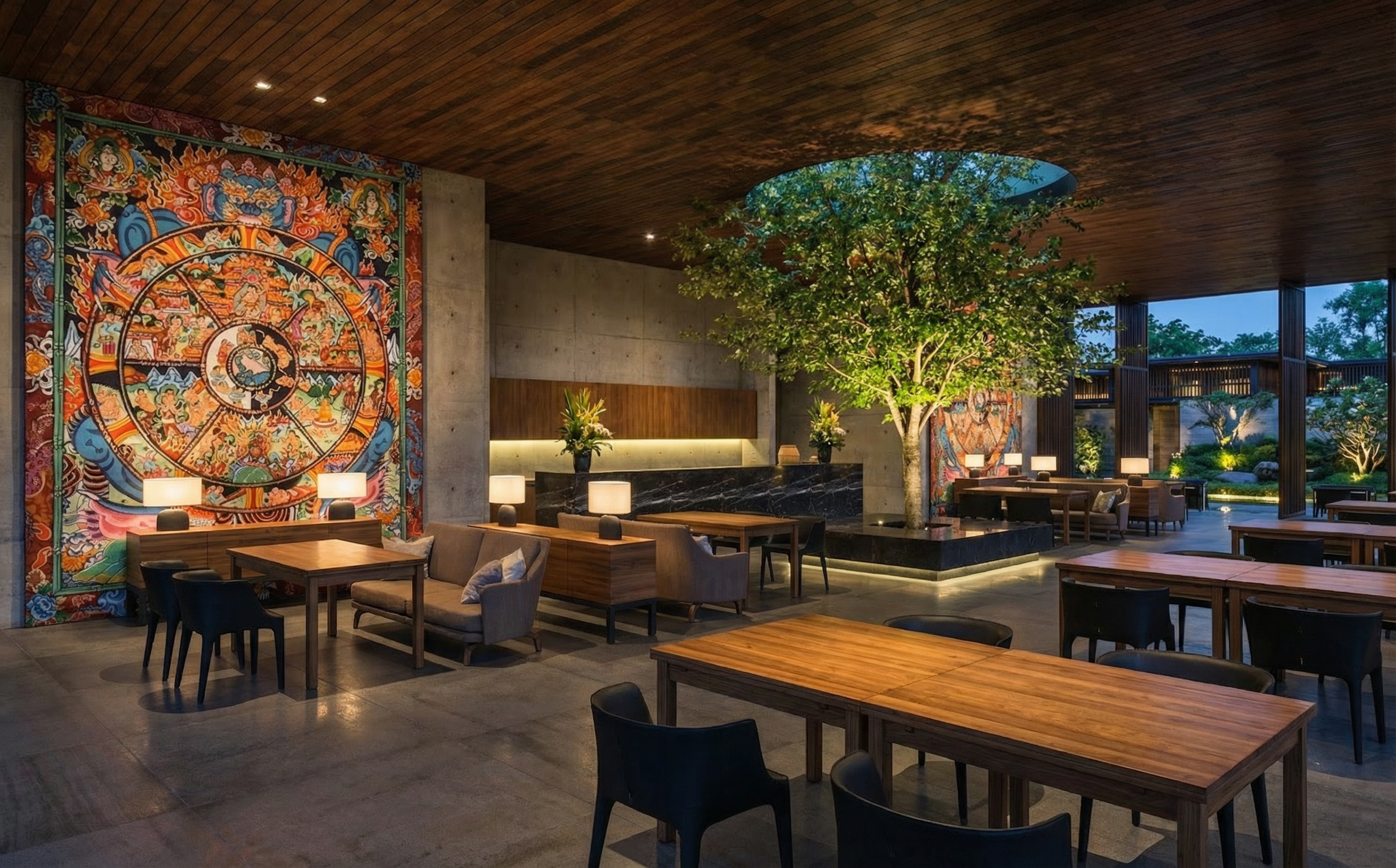 add realism change the high windows to ones without horizontal division unravel the hanging material on the ceiling