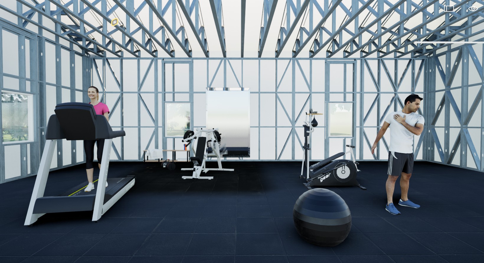show the enterior of a garge but from outside the garge looking in to two garage doors the garage shoud have metal siding on the front and on the roof