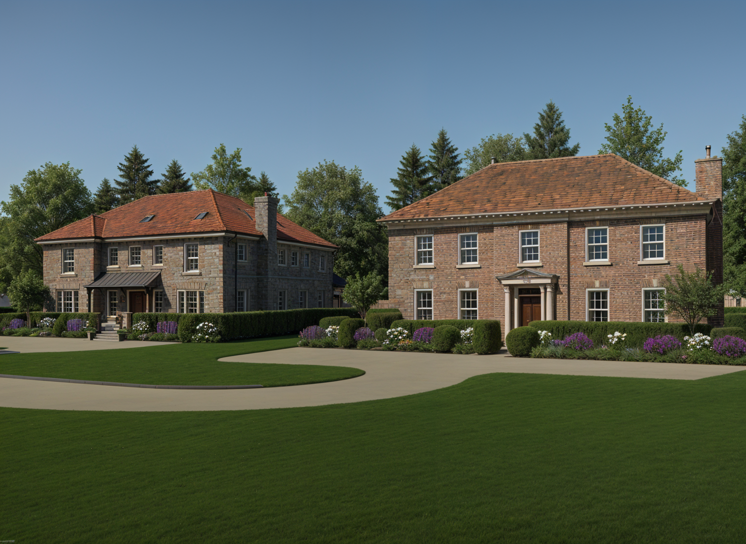 dont change house designs but make the image hyper realistic keep the materials the same but add planting that looks classy and trees in the background keep the entrance porches as designed and dont add any extra detail to the architecture