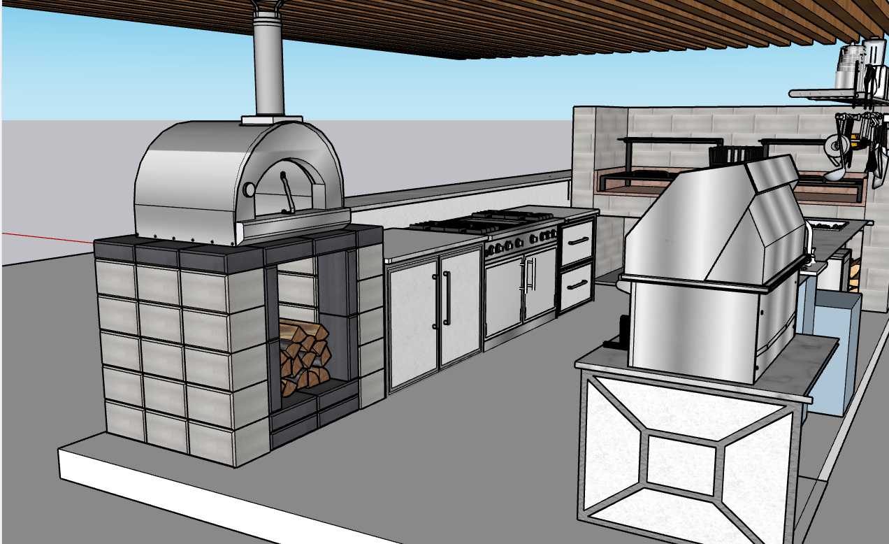ultra realistic luxury outdoor kitchen rendering in a modern uae villa keep the exact layout structure and proportions from the input image convert all materials to premium real world finishes polished stainless steel appliances light marble countertops warm natural wood pergola ceiling smooth architectural stone masonry and matte textured cabinetry style high end contemporary middle eastern villa minimal elegant clean lines lighting bright natural daylight soft global illumination realistic shadows warm reflections on metal surfaces environment desert luxury residential outdoor space airy open surroundings realistic sky light camera architectural photography wide angle but distortion free eye level height modern luxury uae villa backyard private family residence enclosed boundary walls flat urban context exact geometry preserved no design changes real marble countertops brushed stainless steel appliances warm natural wood pergola integrated soft led strip lighting under counters and pergola beams clean stone flooring minimal landscaped planters at slab edges only no countryside no greenery fields bright natural daylight architectural photography realism no people no furniture added no terrain change no layout changes