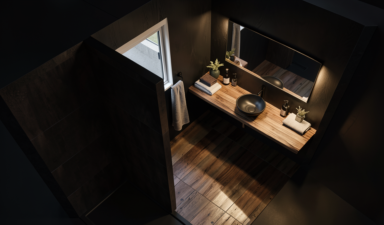 black with wood bathroom