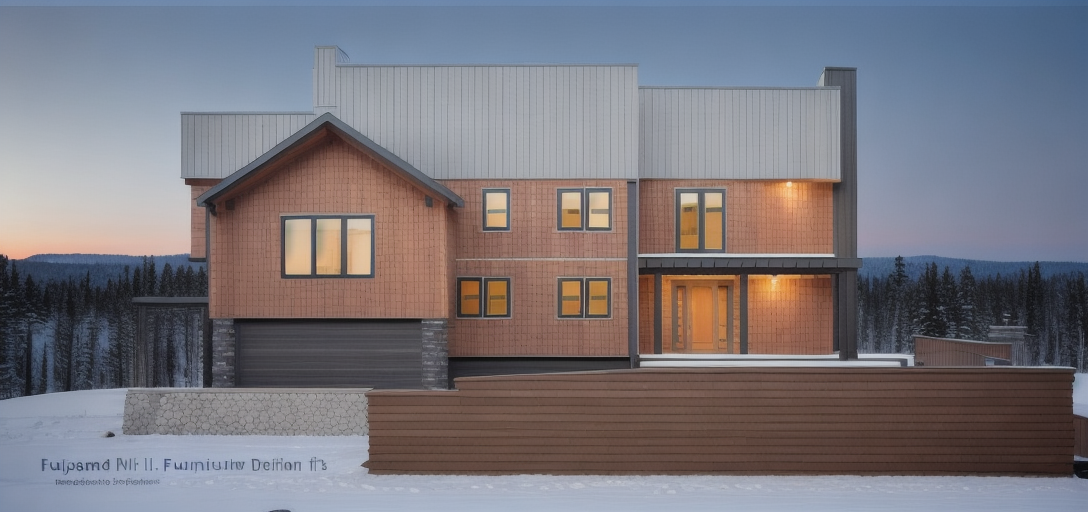 exterior shot render a modern family house in the countryside in light brown color and windows and doors in dark wood color around the house should be a lot of trees the roof should be red