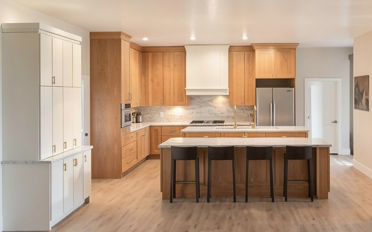 enhance image quality only upscale to 4k resolution preserve the original design exactly as is no changes to geometry materials lighting colors textures composition or camera angle do not add or remove any elements except a small family in the scene facing away from the camera with children running and parents walking naturally and a subtle corner of a tennis court visible in the rear garden the tennis court should appear realistic correctly scaled and partially visible only blending naturally into the landscape without altering the existing garden layout improve sharpness clarity and detail only photorealistic clean high resolution output
