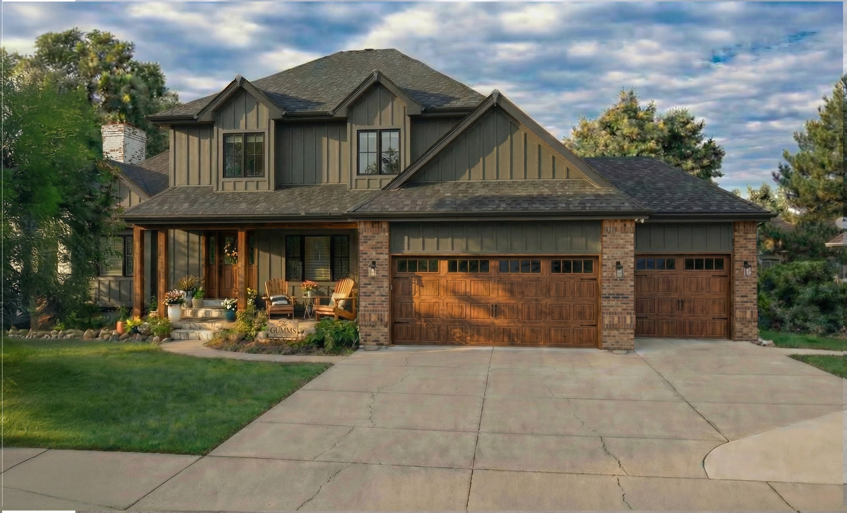 change the chimney brick color to match the color and pattern of the brick around the garage doors do not introduce any new colors