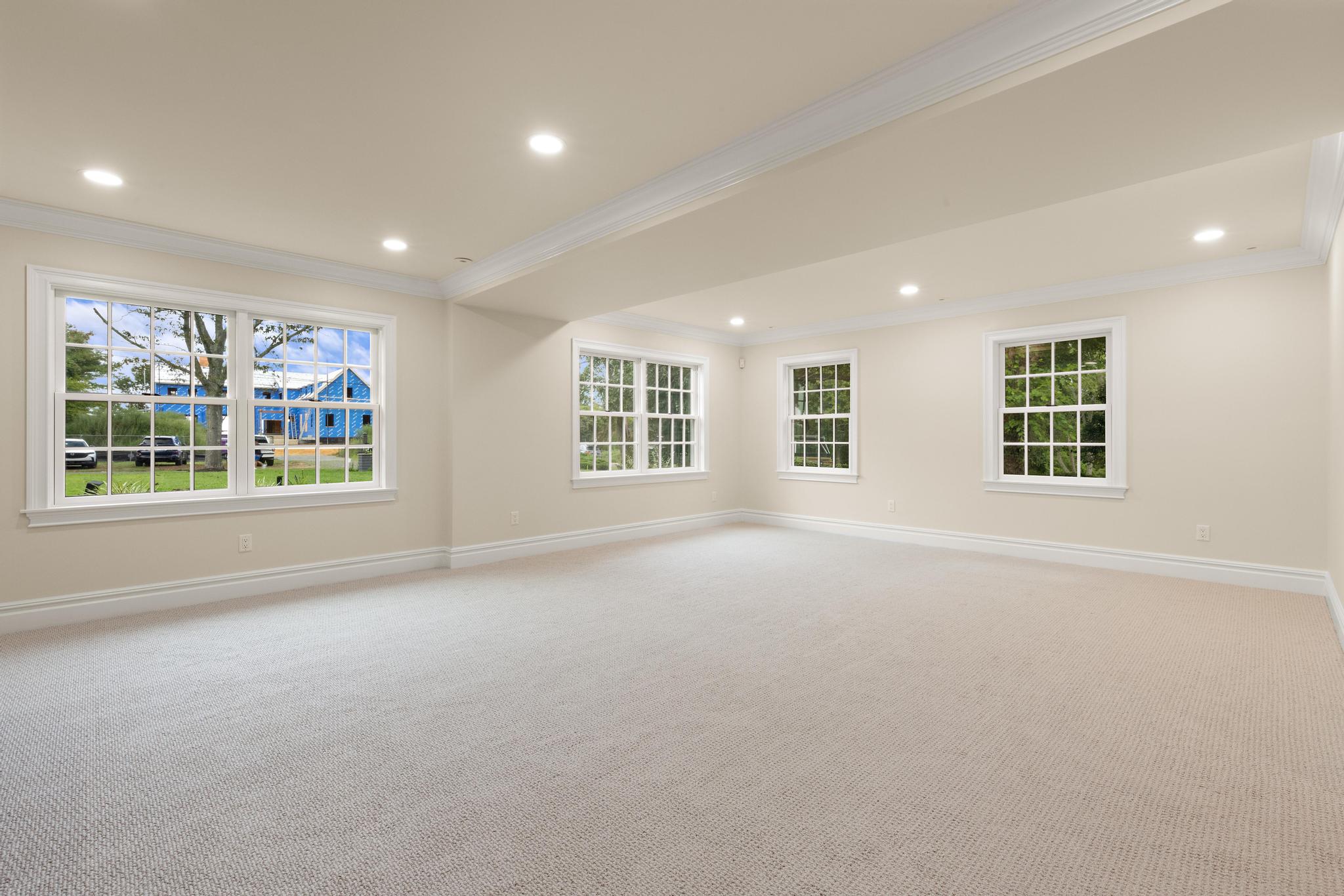 turn this space into a media room blackout shade window treatments add a large comfy expensive sectional couch for lounging and watching movies on the big screen