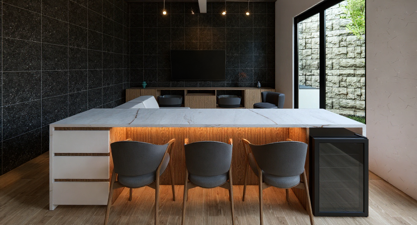 zaha hadid interior shot warm cream color style gray color metal and marble finish children room architecture